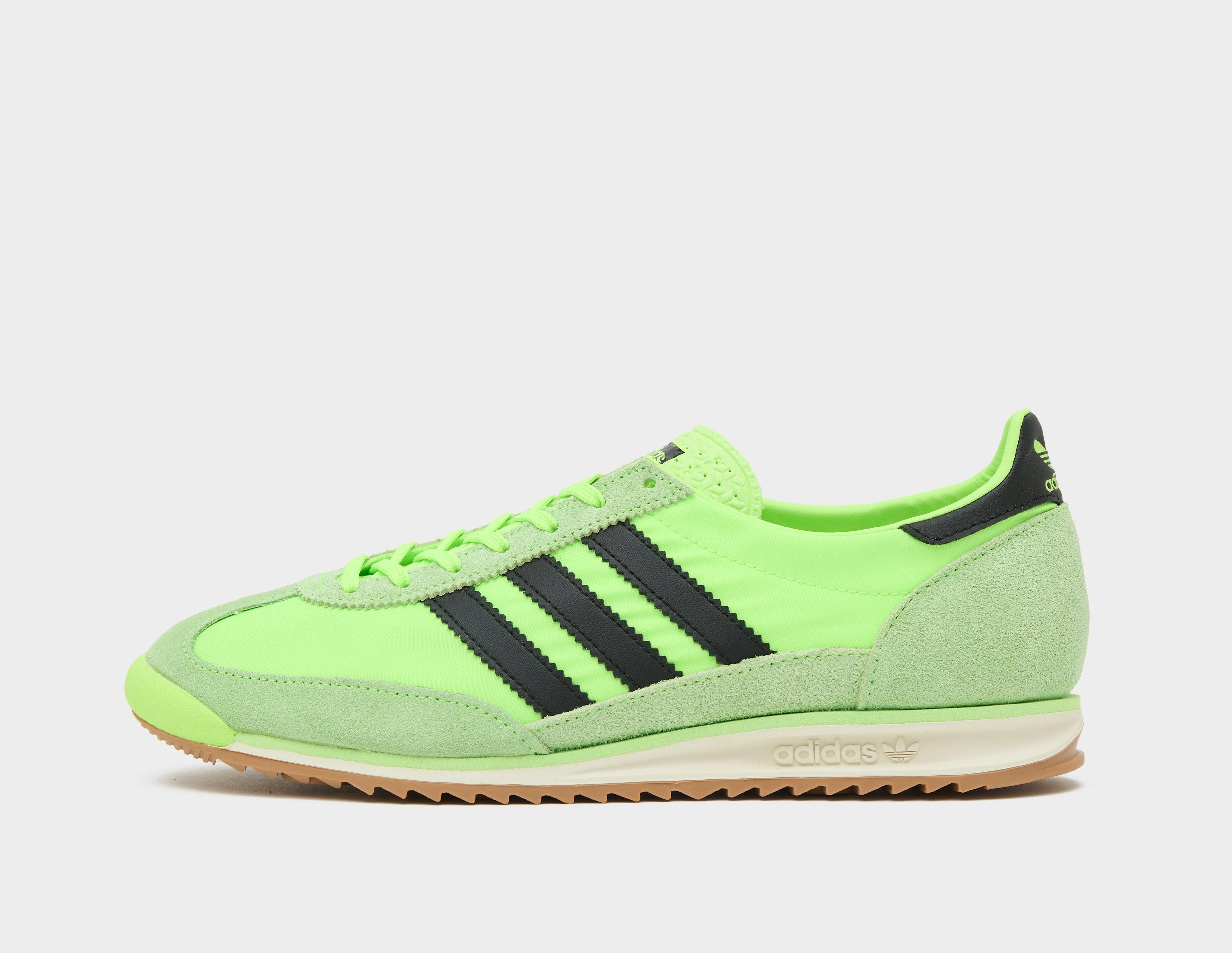 A renascent design from the '70s, the adidas Originals SL 72 OG is a streamline model with plenty of poise. This 'Signal Green' colourway is constructed from a nylon, leather and suede upper with contrast 'Core Black' 3-Stripes and heel cap detailing. Underfoot, EVA cushioning offers up slimline comfort, while serrated rubber outsoles ensure tacky grip on pavements, grass - you name it. | JQ8307