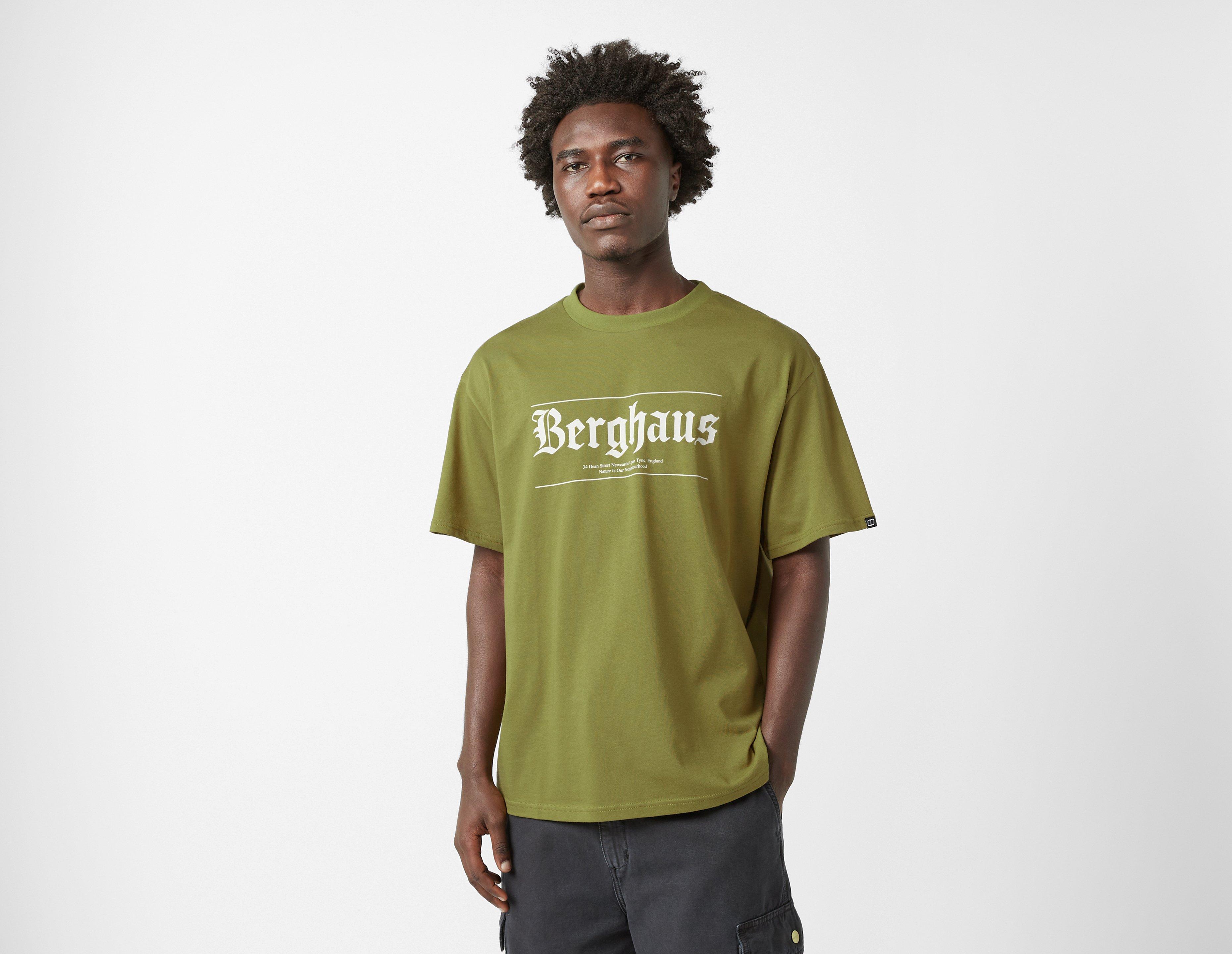 The Berghaus Origins T-Shirt is a size? exclusive cotton crew neck staple that's ideal for the transitional months. Typographic prints adorn the front and reverse. | our model is 6'2'' and wears a size medium