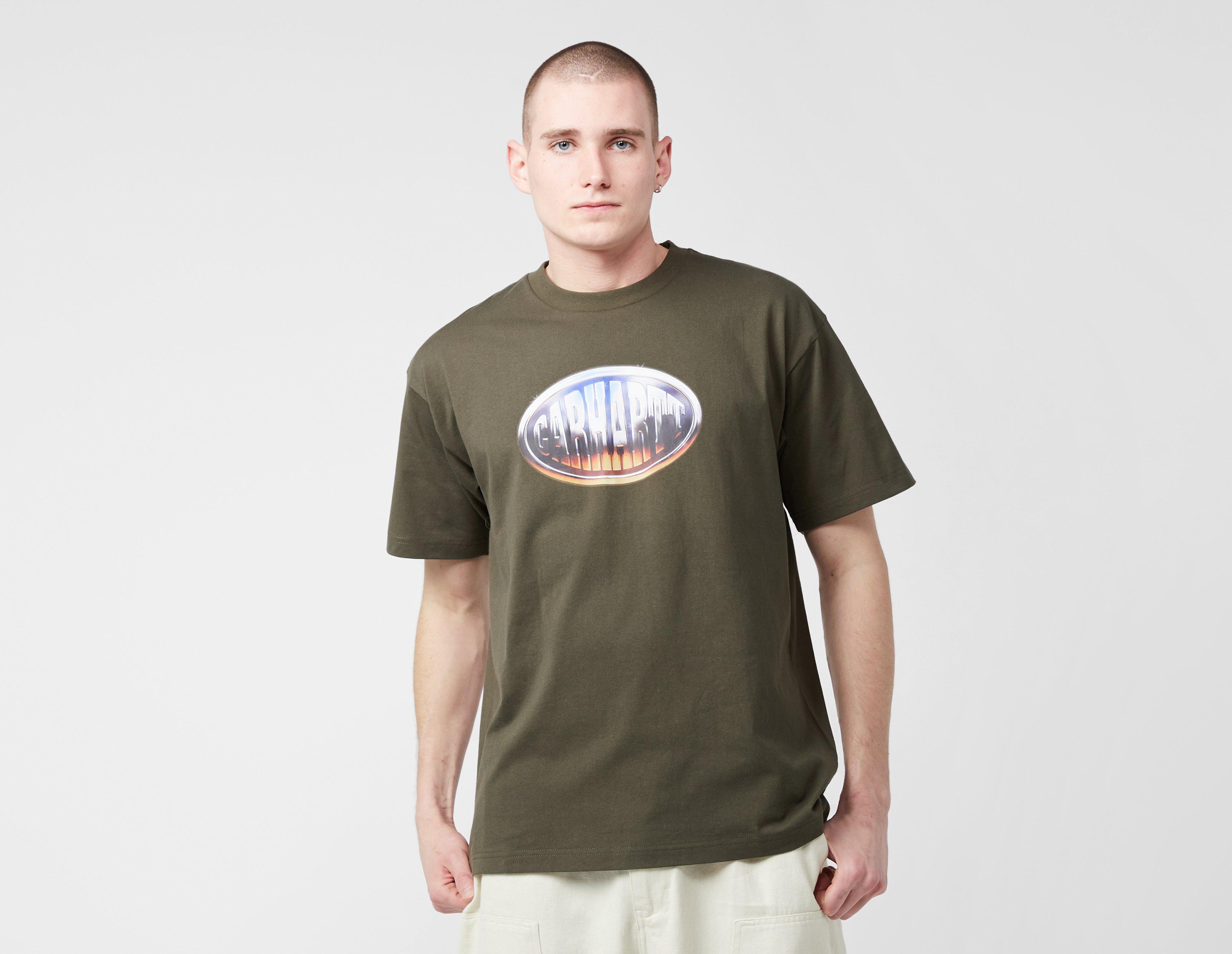 Hit the Big Time in the latest midweight organic cotton tee from Carhartt WIP, which arrives in a 'Cypress' shade and is detailed with a graphic print. | our model is 6'1.5'' and wears a size medium