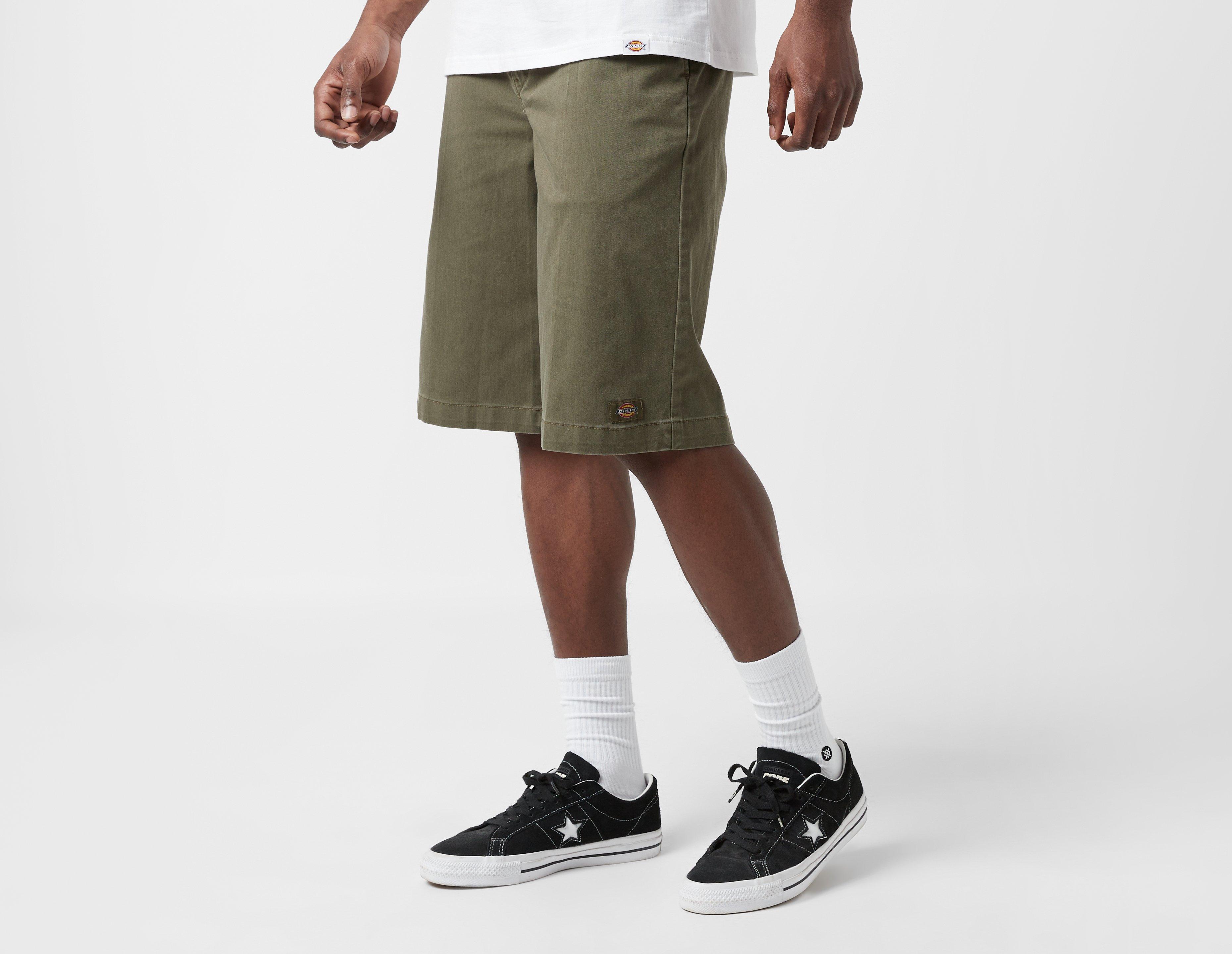 Garment-dyed, Dickies' Unionville 13'' Work Shorts are 7oz polycotton recipes that've been cut to a loose fit which runs below the knee and pleated at the front. An elasticated waist provides stretchy stylisation, while back welt and side pockets stash your essentials. Woven brand label detail signals Texan heritage. | our model is 6'1'' and wears a size 32''