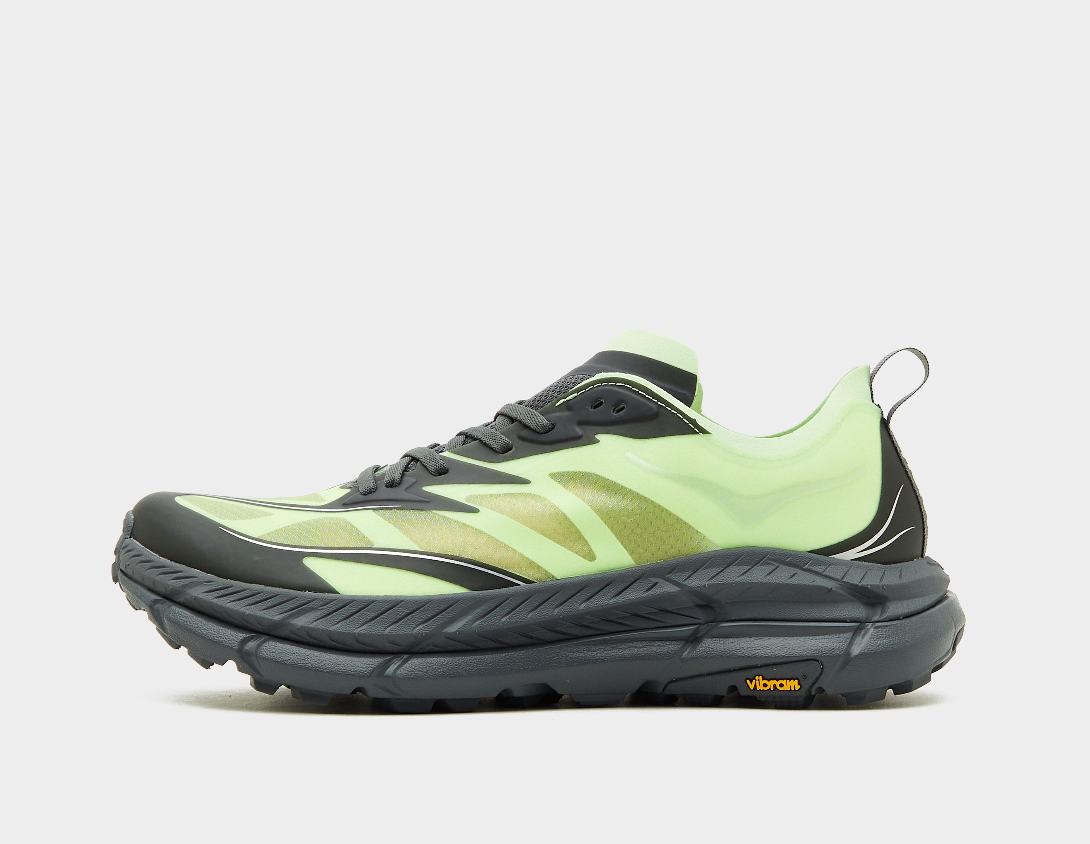 HOKA's Mafate Speed 4 Lite walks the line between outdoor capability and street style with its trail-tackling technology and minimalist design cues. Fitted with protective ripstop nylon, the super lightweight transparent upper arrives in a sugary 'Luna Moth' and 'Cosmic Grey' colour palette. Underfoot, the ProFly+ midsole is supported by a Vibram Megagrip with Litebase and Traction Lug outsole for extra grip, perfect for mud or concrete. | 1168450-LHC