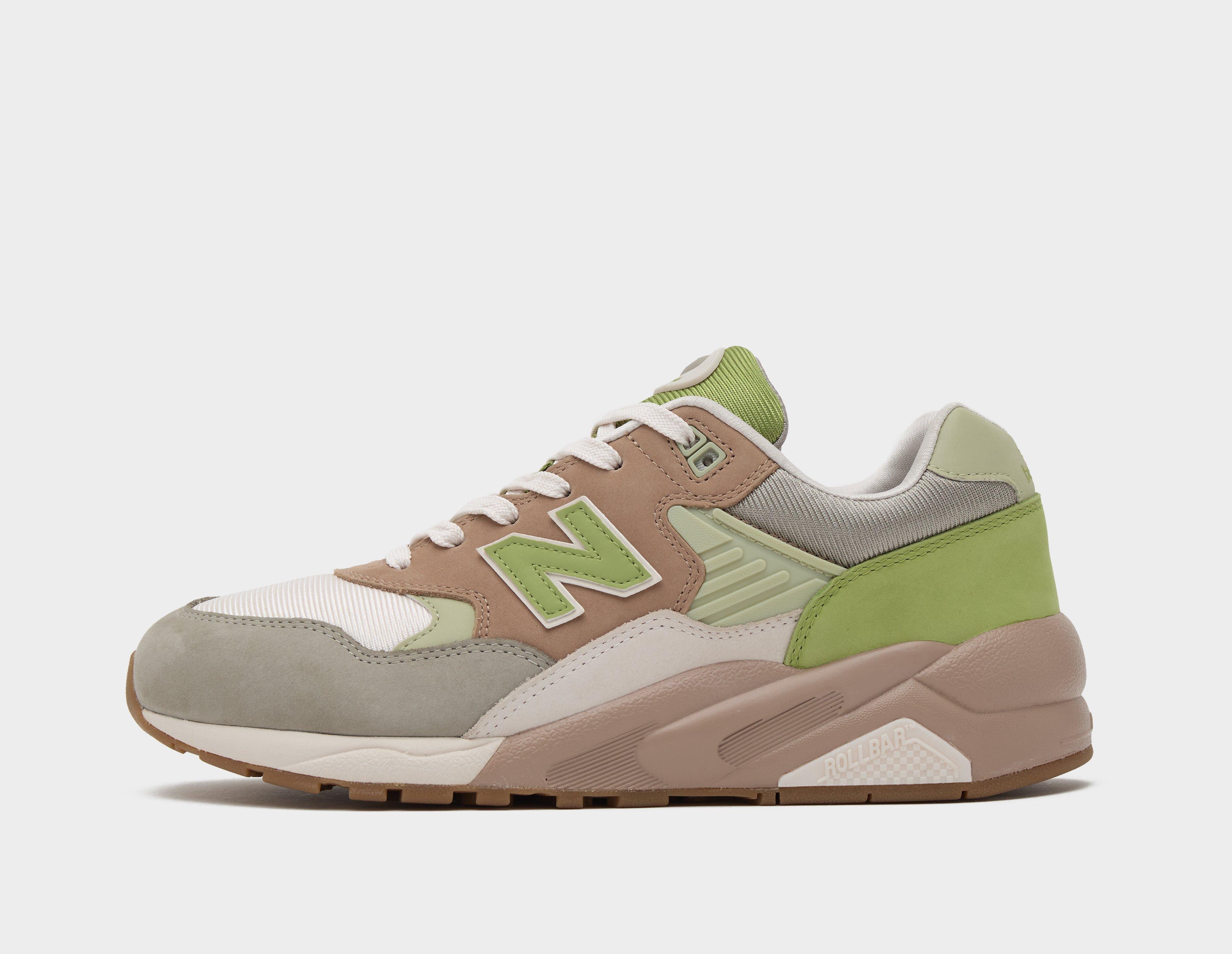 The New Balance 580 has seen a recent revival, and we couldn't wait to give our take on the silhouette which has seen a huge surge in popularity following its 2022 re-released. Boasting a 'Green/Cream/Brown' colourway, this one's inspired by the huge gaming culture of the noughties. Layers of premium leather overlay textile bases, whilst eye-catching tones pay homage to old-school gaming devices. Branding sits in the usual spots, while chunky rubber soles offer a contemporary aesthetic. Rollbar technology delivers stability to your step, plus ABZORB midsoles enhance comfort and signing the pair off is tacky tread. | MT580Z2