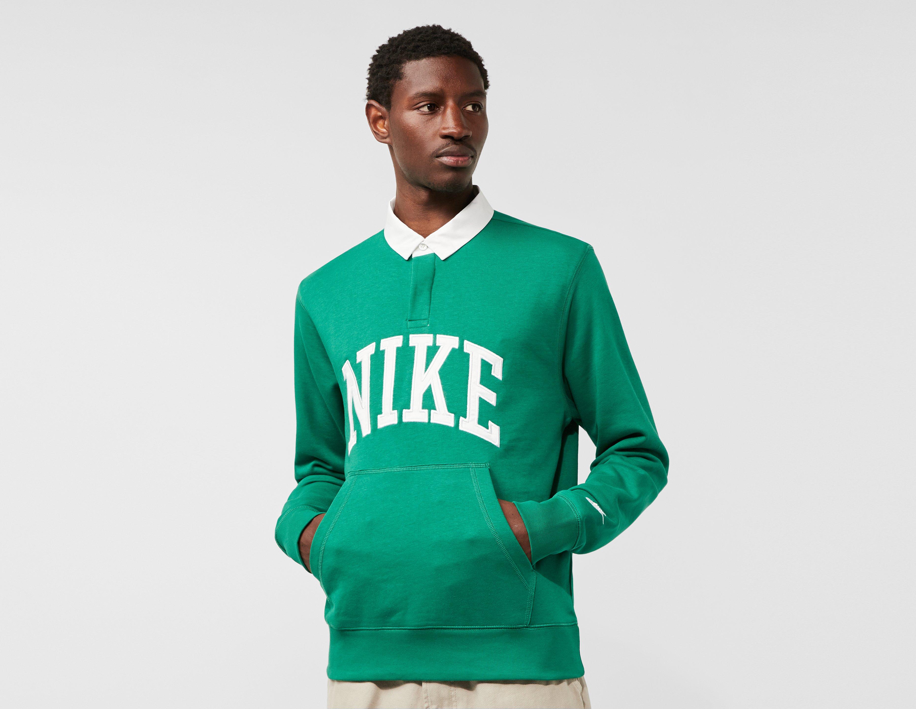 Hinting at classic rugby stylings, the Nike Club Long Sleeve Polo is a lightweight fleecy layer with a button down flap collar. Sewn-on brand lettering sits above the roomy kangaroo pocket, while Nike Futura embroidery radiates Swoosh heritage above the ribbed left cuff. | FN3112-365 | our model wears a size medium