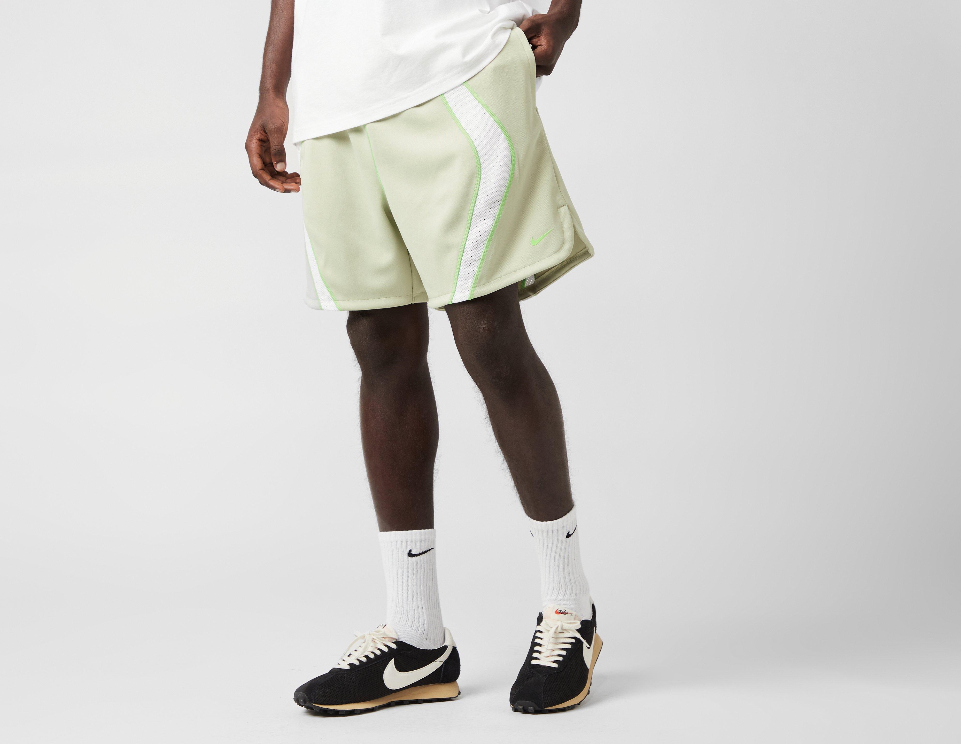Reworking retro sportswear with innovative fabrics, Nike delivers its Project F.R.O.G Woven Shorts, reflecting vintage short designs doused in an 'Olive Aura' hue. Lightweight polyester and a mesh lining confirm comfort, while pockets and a bungee cord waist provide functional touches. 'Green Strike' Swoosh branding signs off. | HJ6944-371 | our model is 6'2'' and wears a size medium