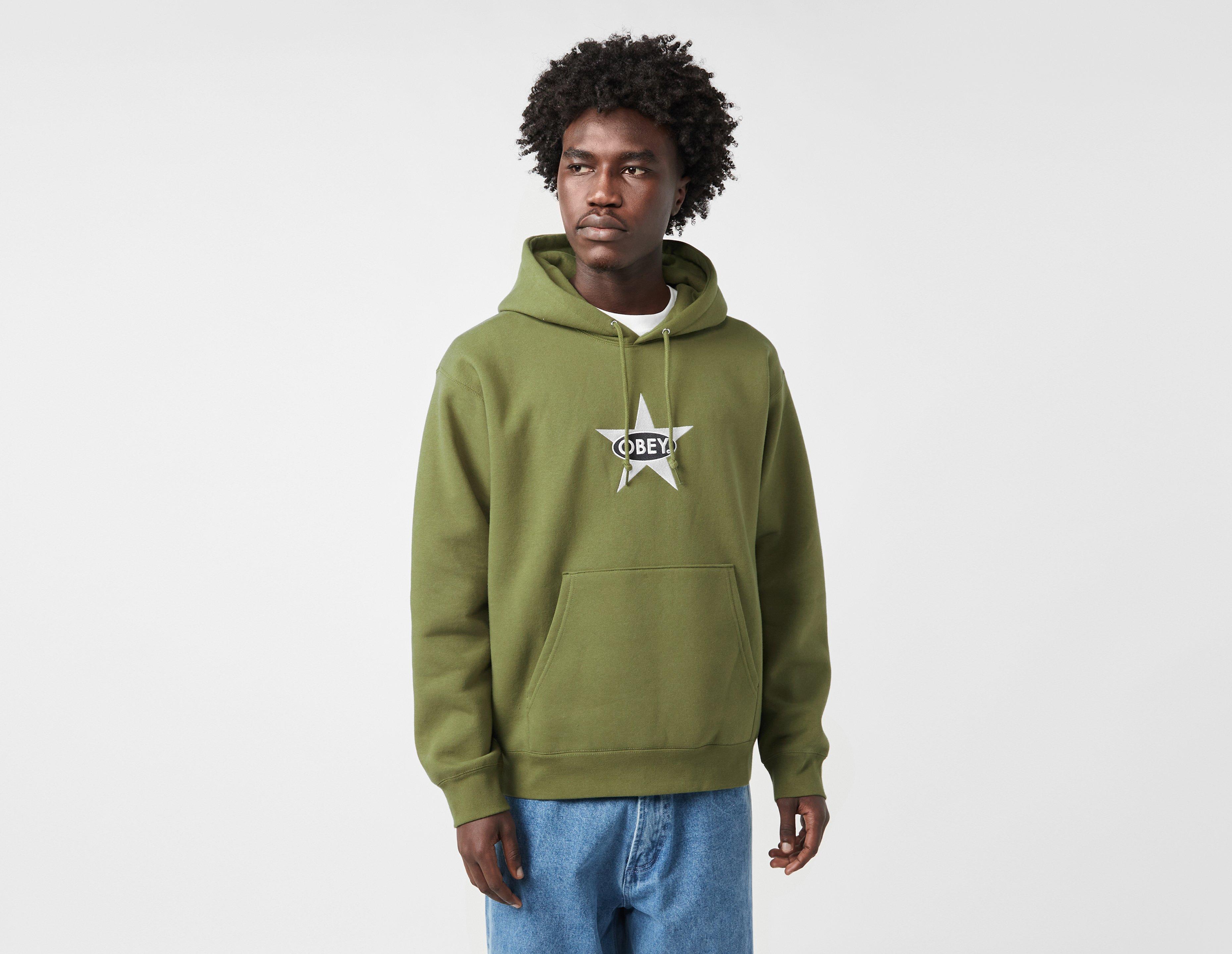 The OBEY Empire Hoodie is cut to a relaxed fit and houses ribbed trims, a kangaroo pocket and drawstrings for adjustability. Logo embroidery adorns the chest. | our model is 6'2'' and wears a size medium