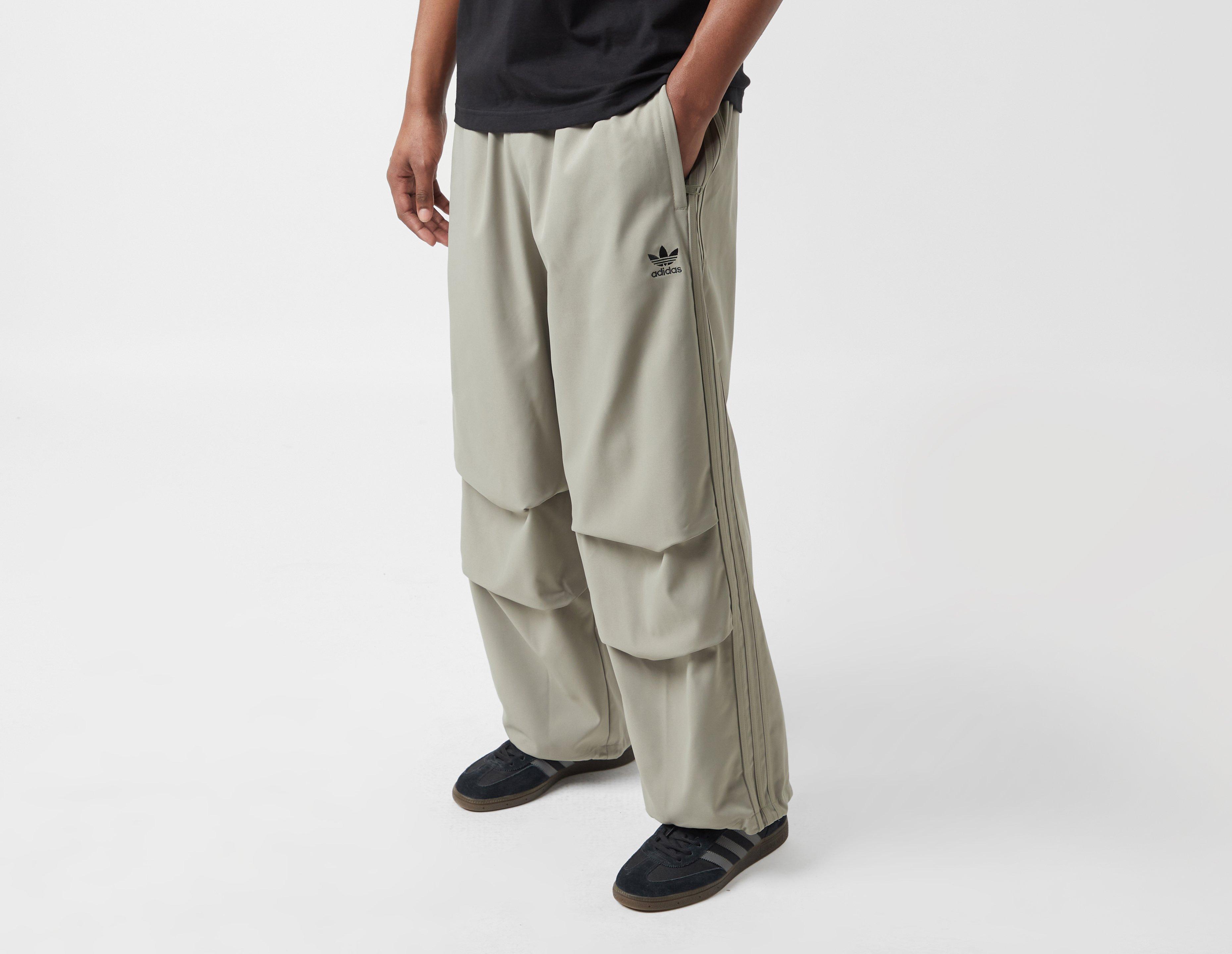 Something a little different silhouette-wise, the adidas Parachute Pants arrive with a loose fit and darted knee detailing. Adjustable hems let you change up your style, while tonal 3-Stripes keep things subtle on the 'Silver Pebble' design. | IZ4849 | our model is 6'2" and wears a size medium