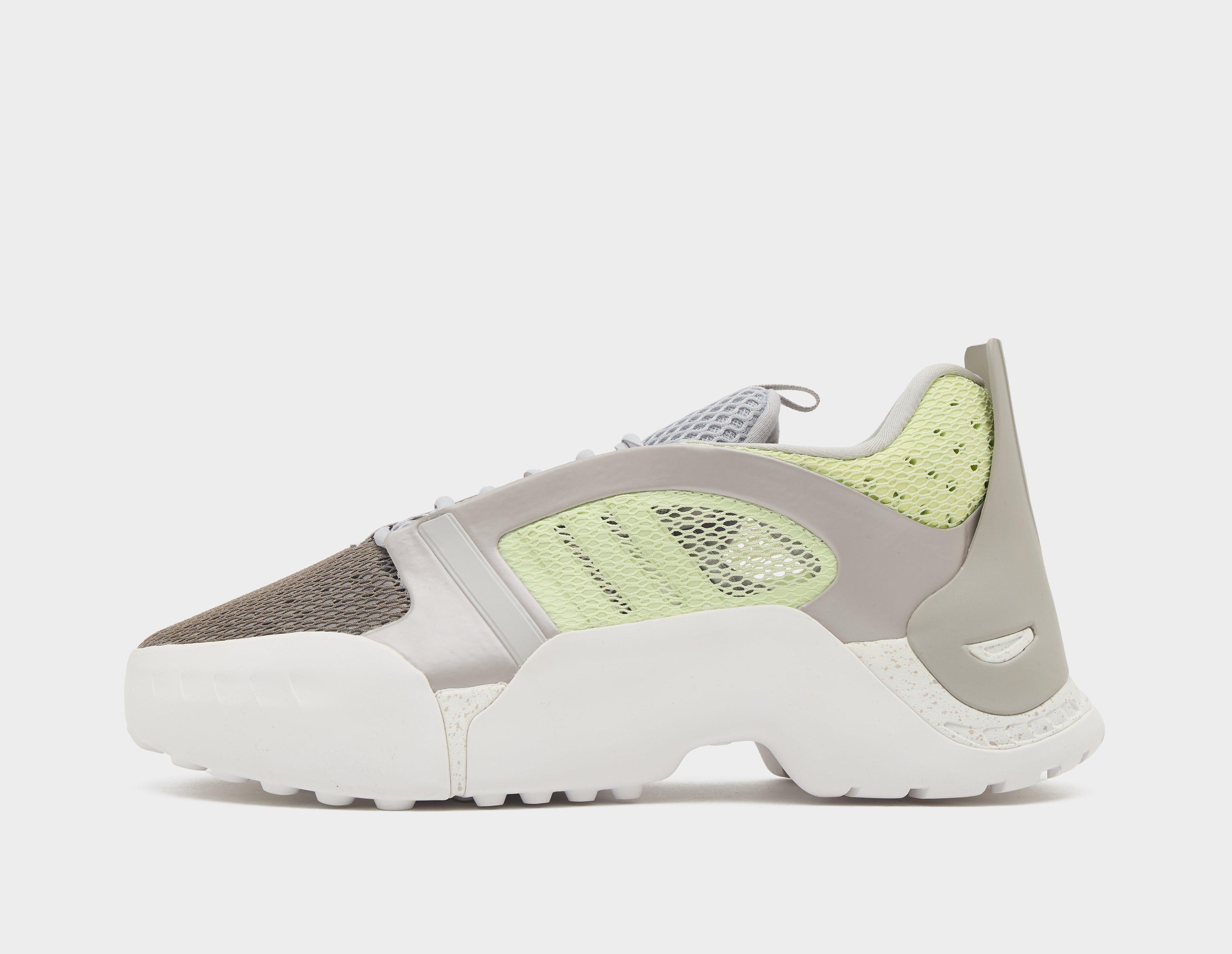 Disruptive Chinese designer, Dingyun Zhang, joins forces with adidas to present the archival-inspired, yet completely new, Kouza shoe. Inspired by otherworldly creatures and science fiction, the visually impressive design features an ultra-lightweight 'Almost Lime' and 'Clear Granite' upper of breathable mixed mesh and synthetics. Underfoot, an exaggerated sole unit unleashes protective rubber from the outsole up to the heel. | JH9127