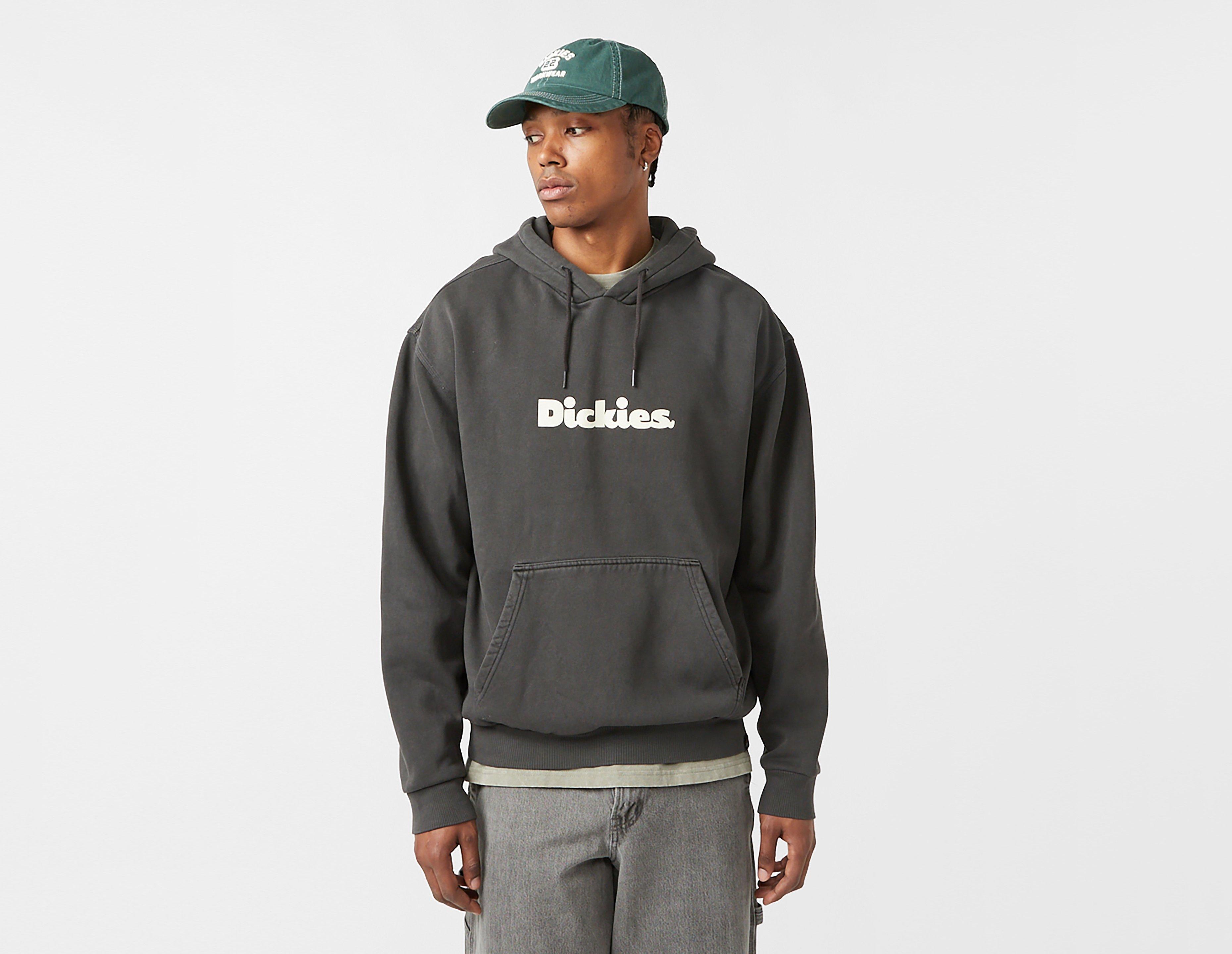 Garment dyed for a unique finish, the Slayden Hoodie in washed black has a comfy polycotton construction with a brushed fleece lining for extra cosiness. Screenprinted on the chest is a Dickies script logo for a touch of heritage, while a slouchy fit offers a casual appeal. | our model is 6'1" and wears a size medium