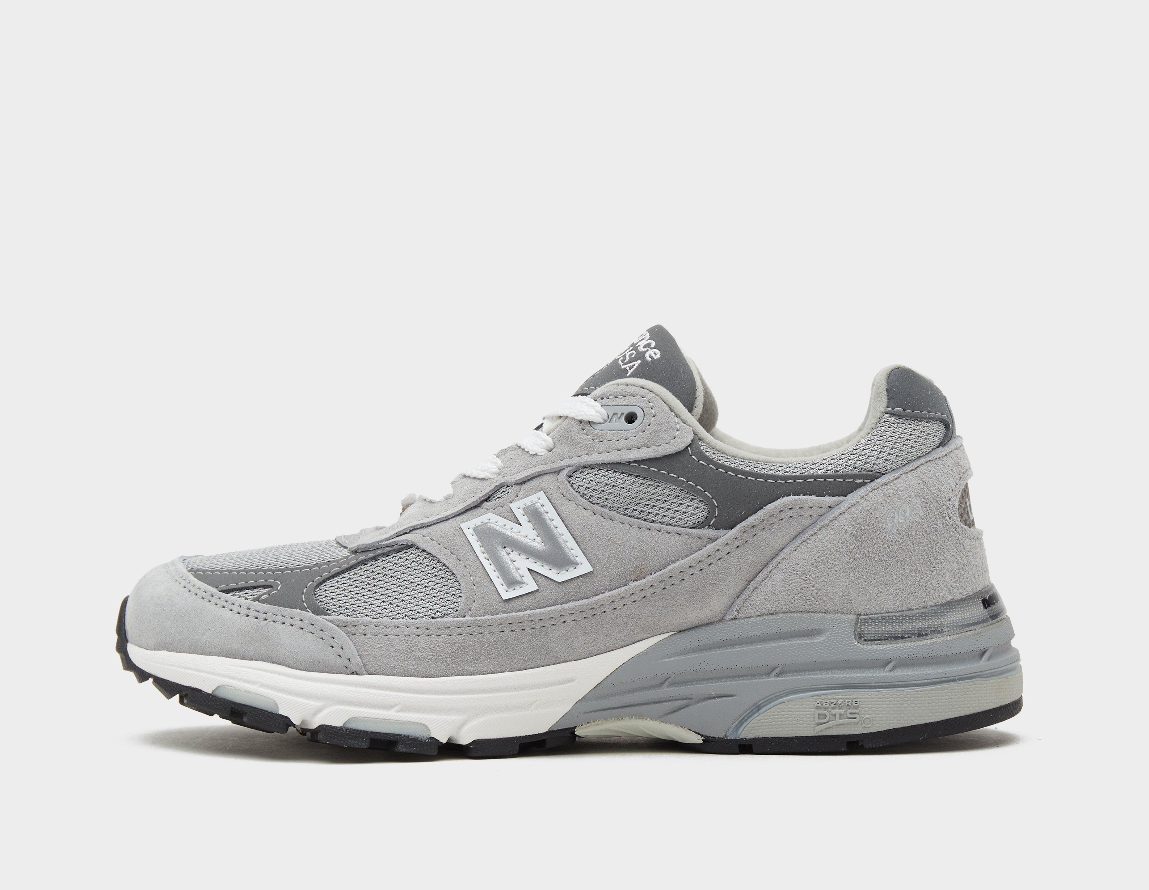 Renowned for high quality materials and premium construction, the New Balance Made in USA 993 makes for essential wearing. This one delivers cool grey tones, with a mixed material upper of suede, mesh and synthetics delivering breathability and a layered aesthetic. Crisp white laces give a clean feel to the shoe, and 'N' branded sidewalls team up with logos on the tongue to signal New Balance identity. A shoe that feels as good as it looks, the midsole includes ABZORB technology for plush all-day cushioning, and the rubber-dressed outsole ensures grippy traction. | WR993GL