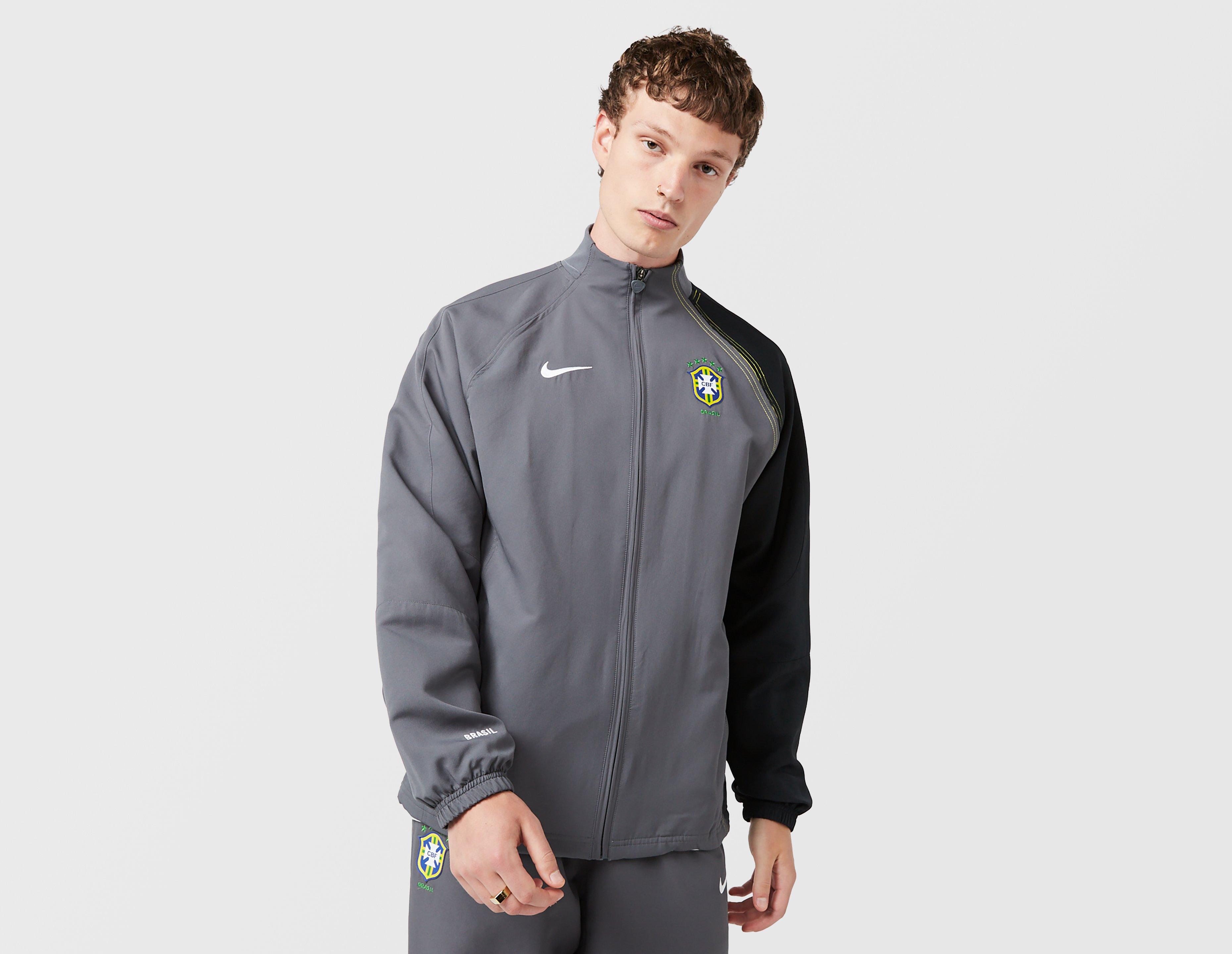 Nike throw it back to the early 2000s with a 1:1 reissue of the Brazilian national team's 2004 Total 90 Track Top that's cut from soft knit polyester with elasticated cuffs, tonal panelling, and contrast stitch detail while Swoosh, emblem and typographic embroideries offer up vintage appeal. Too good. | HV4437-021 | our model is 6'1'' and wears a size medium