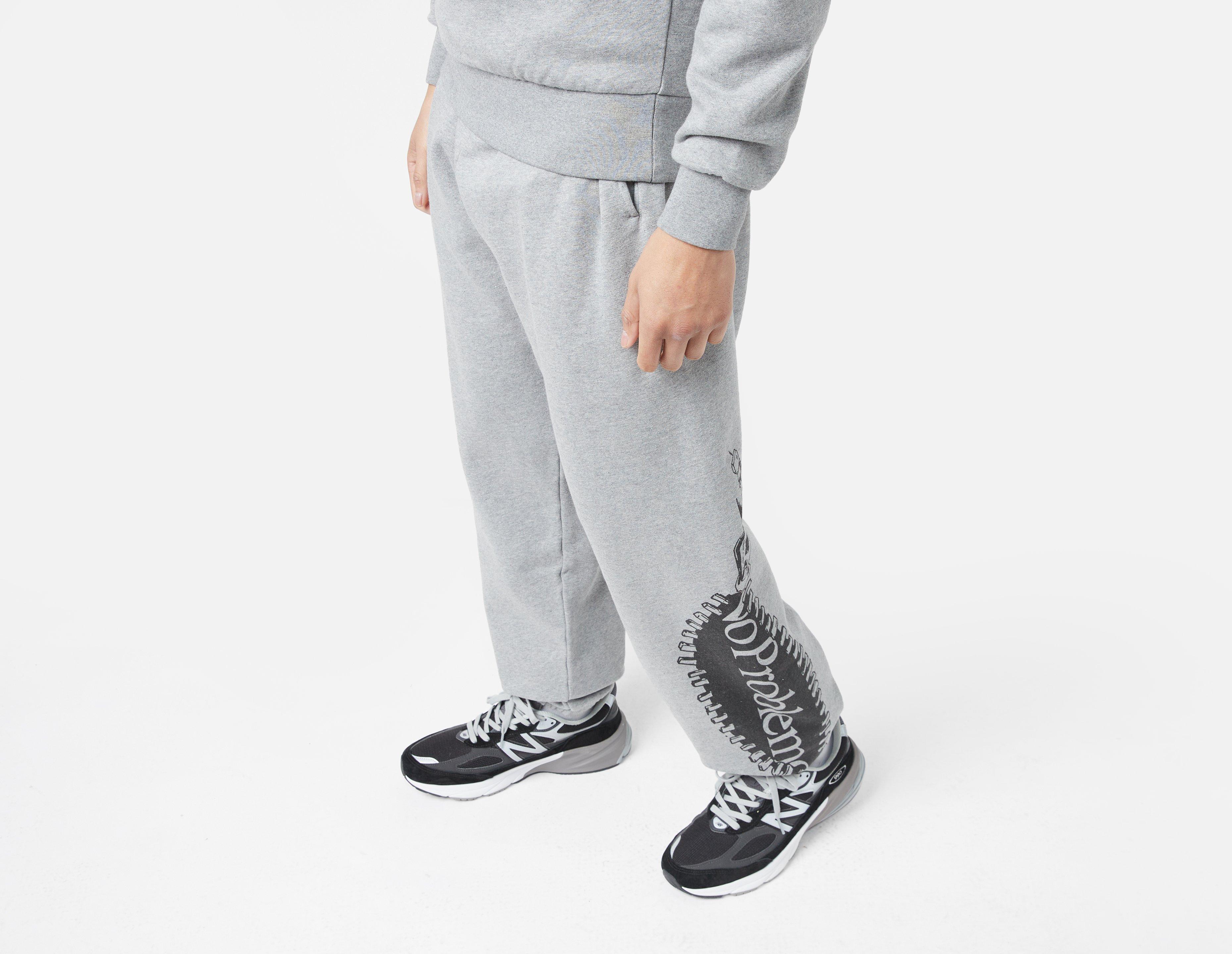 No Problemo delivers ultimate comfort with the Zip Logo Joggers. Constructed from soft, brushed-back jersey fleece, the grey backdrop is interrupted by a large graphic-printed zipper on the leg, revealing classic branding. | our model is 6'0" and wears a size medium