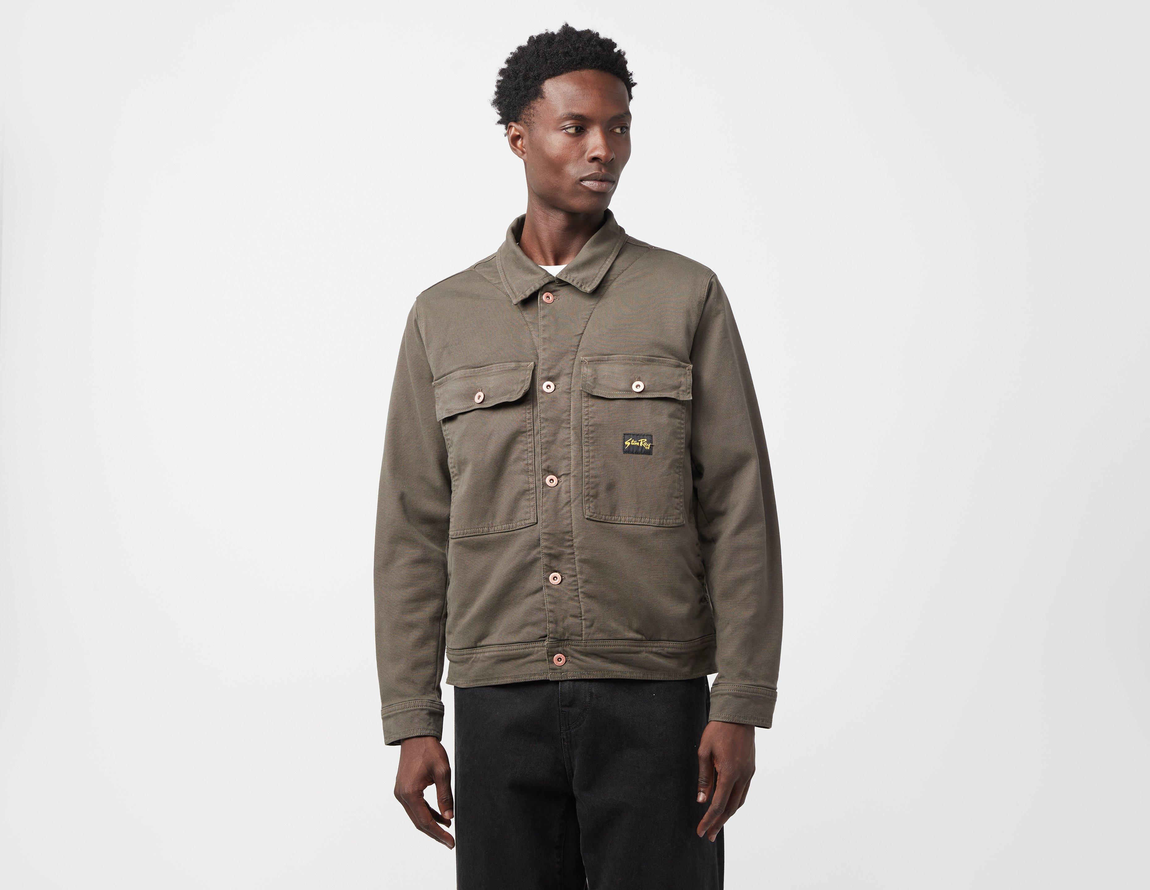 Born in Texas back in '72, Stan Ray's range of apparel embodies minimal designs and function. The AW24 Trucker Jacket offers an updated design with oversized pockets and hidden pockets at the side seam. A premium construction is met by a 100gsm quilted liner that's decorated with a map print of Crockett, while Stan Ray labelling signs this piece off. | our model is 6'2" and wears a size medium