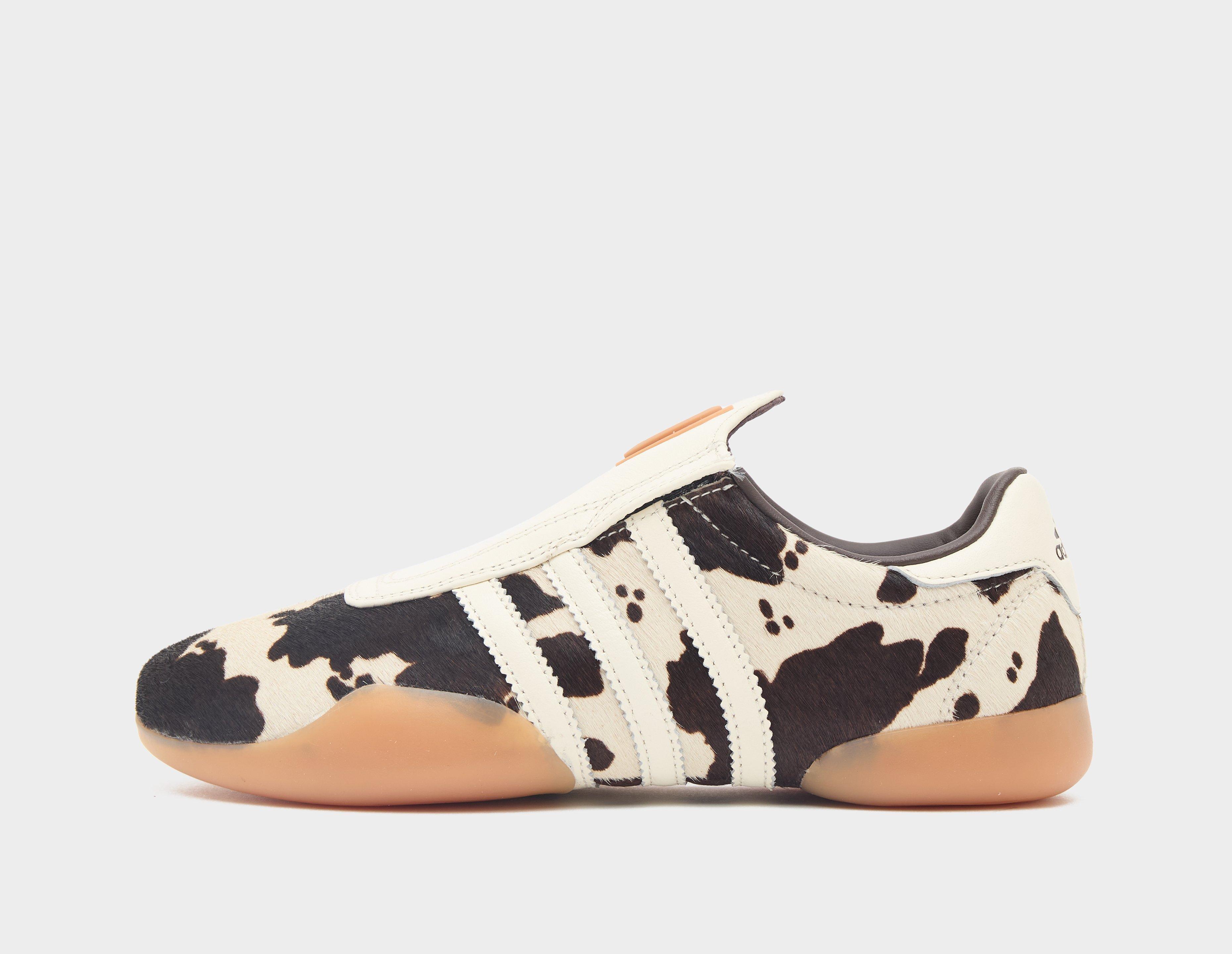 Low-profile prowess. The adidas Originals Taekwondo Mei is a laceless design that pulls cues from the German label's early 2000s martial arts-inspired lineage. Style-forward, the upper is constructed from cow-print pony hair while neutral leather 3-Stripes adorn the sidewalls and gum soles provide grip underfoot. | JS0297