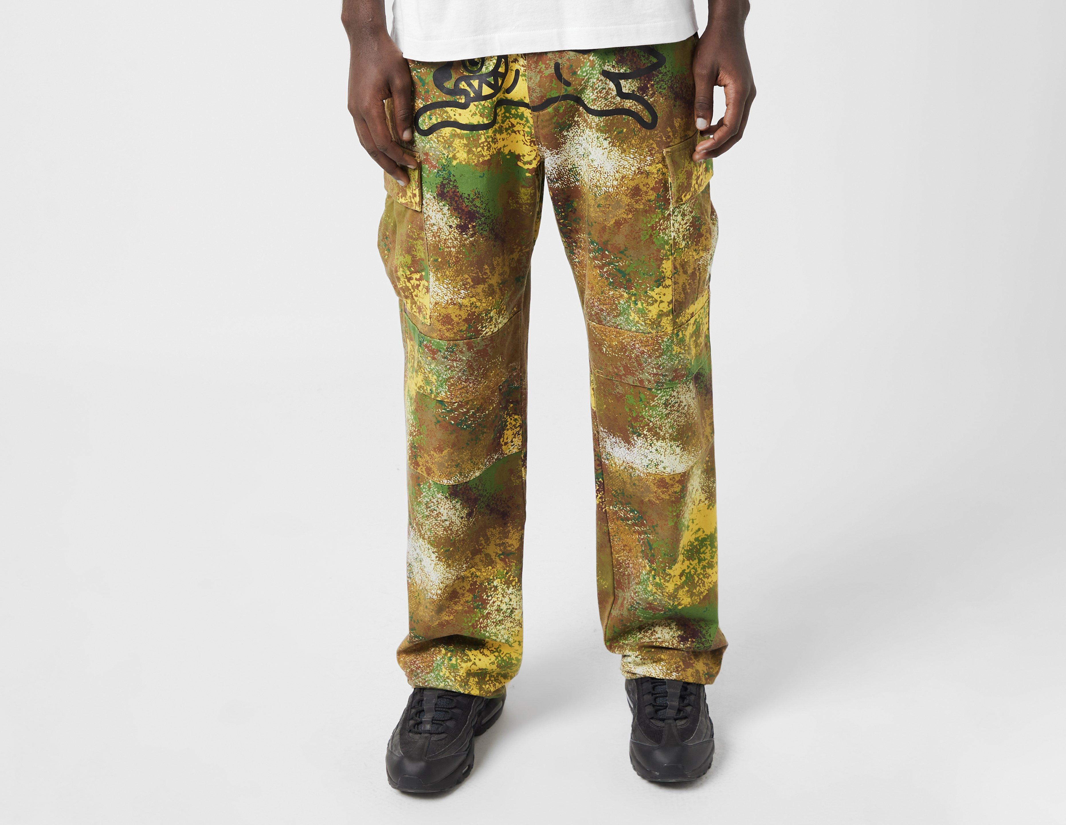 ICECREAM’s Running Dog Camo Cargo Pants are a sturdy straight leg silhouette with a screen print motif and adjustable hem toggles. | our model is 6’2’’ and wears a size medium
