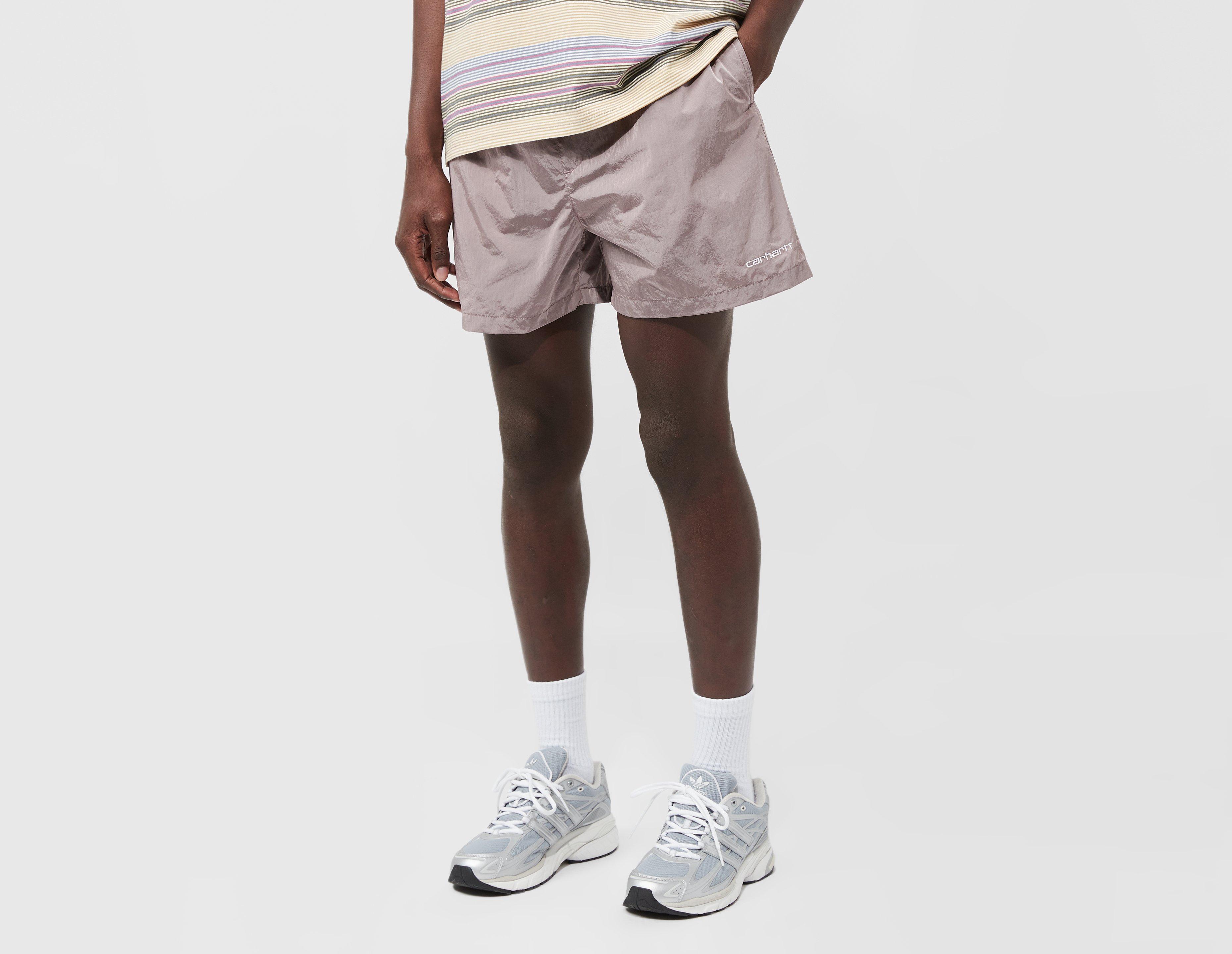 Something new for your warm weather wardrobe, Carhartt WIP presents the Tobes Swim Trunks. Stamped with a Script Logo for authenticity, these 'Glassy Pink' shorts are crafted from lightweight nylon taffeta and have a handy key holder in the back pocket. | our model is 6'1" and wears a size medium