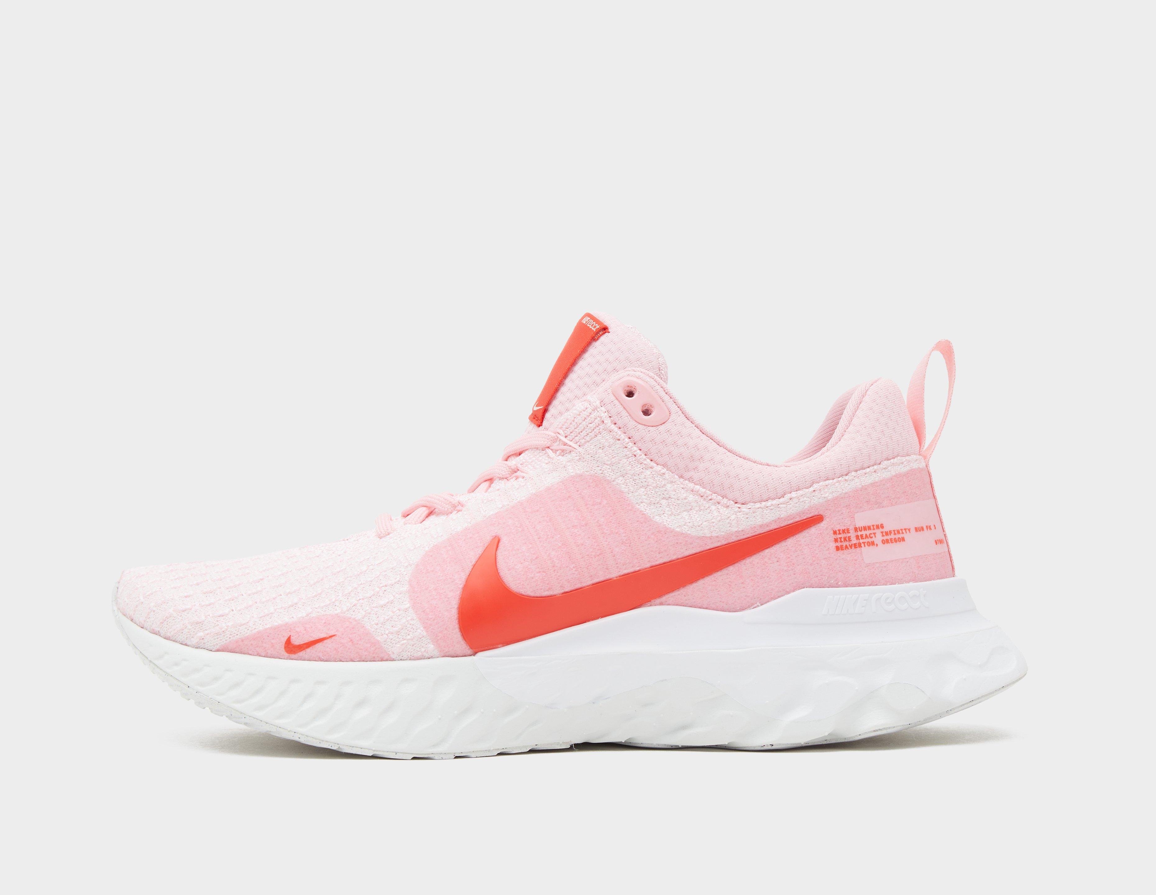 Pink hues are present through the uppers for this take on the Nike Infinity React 3, the performance-boosting runner with a supremely comfy construction. Flyknit uppers keep the air flowing through round-the-black sprints and longer ventures, whilst React cushioning runs through the midsole for all the support and responsive technology needed. Rubber soles complete the setup, so you can be sure of every stride. | DZ3016-600