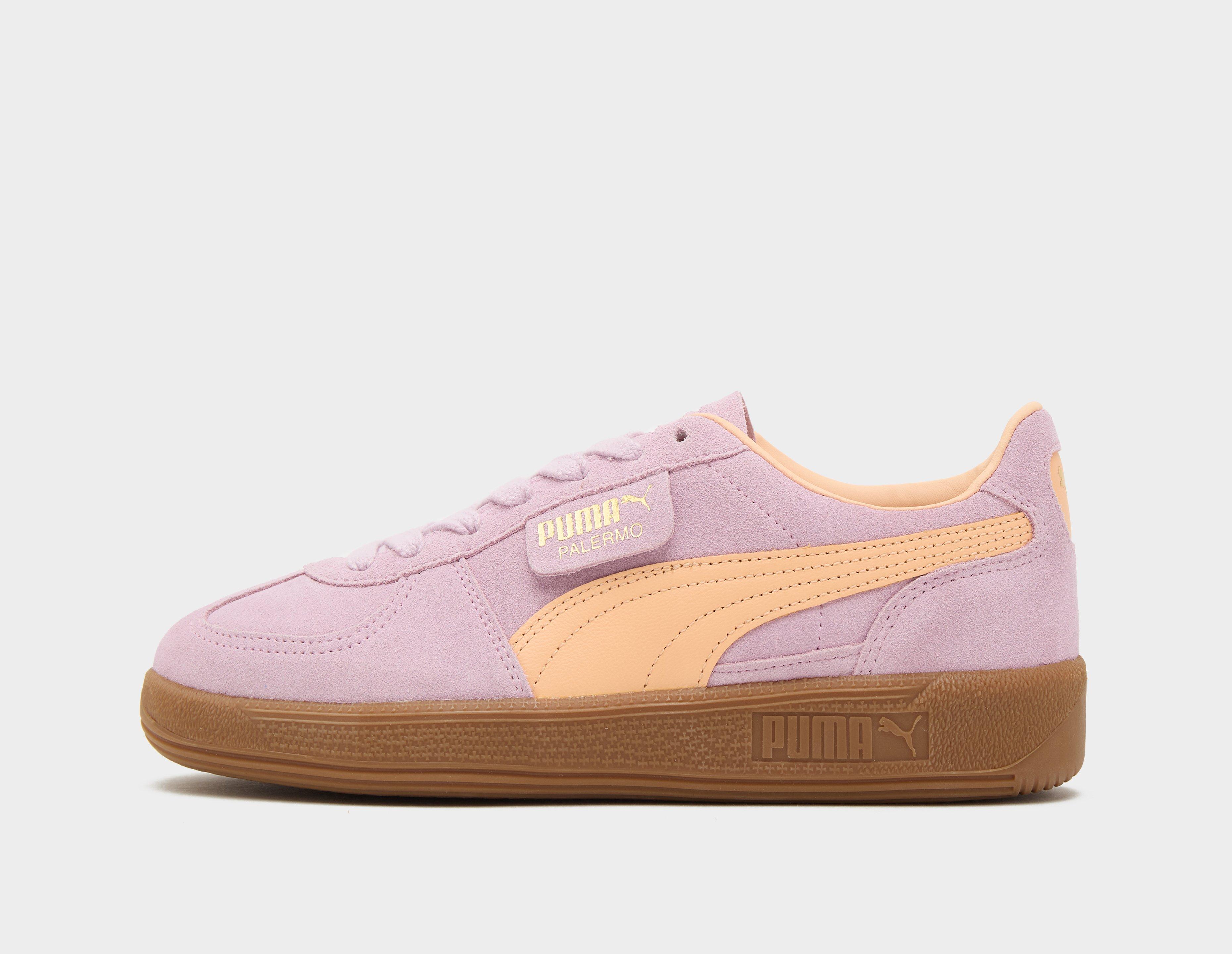 First debuting in the '80s, it wasn't long before the PUMA Palermo was labelled as a terrace deity. Now the archetypal grail returns in a full-leather 'Grape Mist' and 'Peach Fuzz' upper. Heralded for its T-toe styled tooling and rubber gum sole, the Palermo is a low-profile silhouette with impressive durability - hence its adoration by European football fans. Gold PUMA branding signs off on the lateral tab for a lustrous finish. | 396463_06