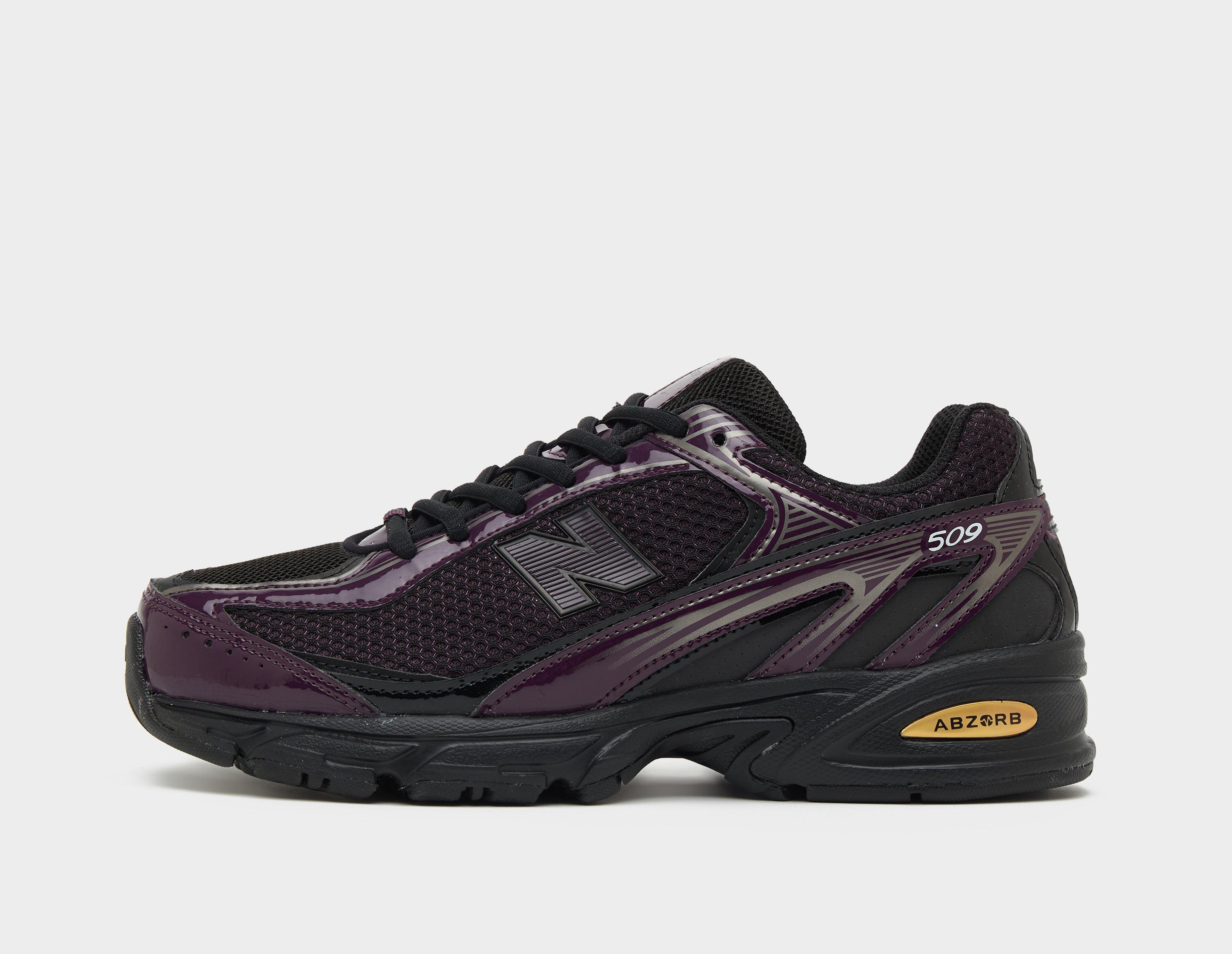 Revived by South Korean designer Do Hee Kim back in 2024, New Balance's 509 is a retro runner which takes elements from the Boston brand's 530 lineage into its stride. Incorporating an ice-dyeing technique, porous mesh uppers are robed in purple patent leather overlays. Underfoot, C-CAP and ABZORB cushioning technology keeps things comfortable, whereas 'N' logos morph across the sidewalls to finish evoking the New York label's constant relationship with improved motion. | U509B1