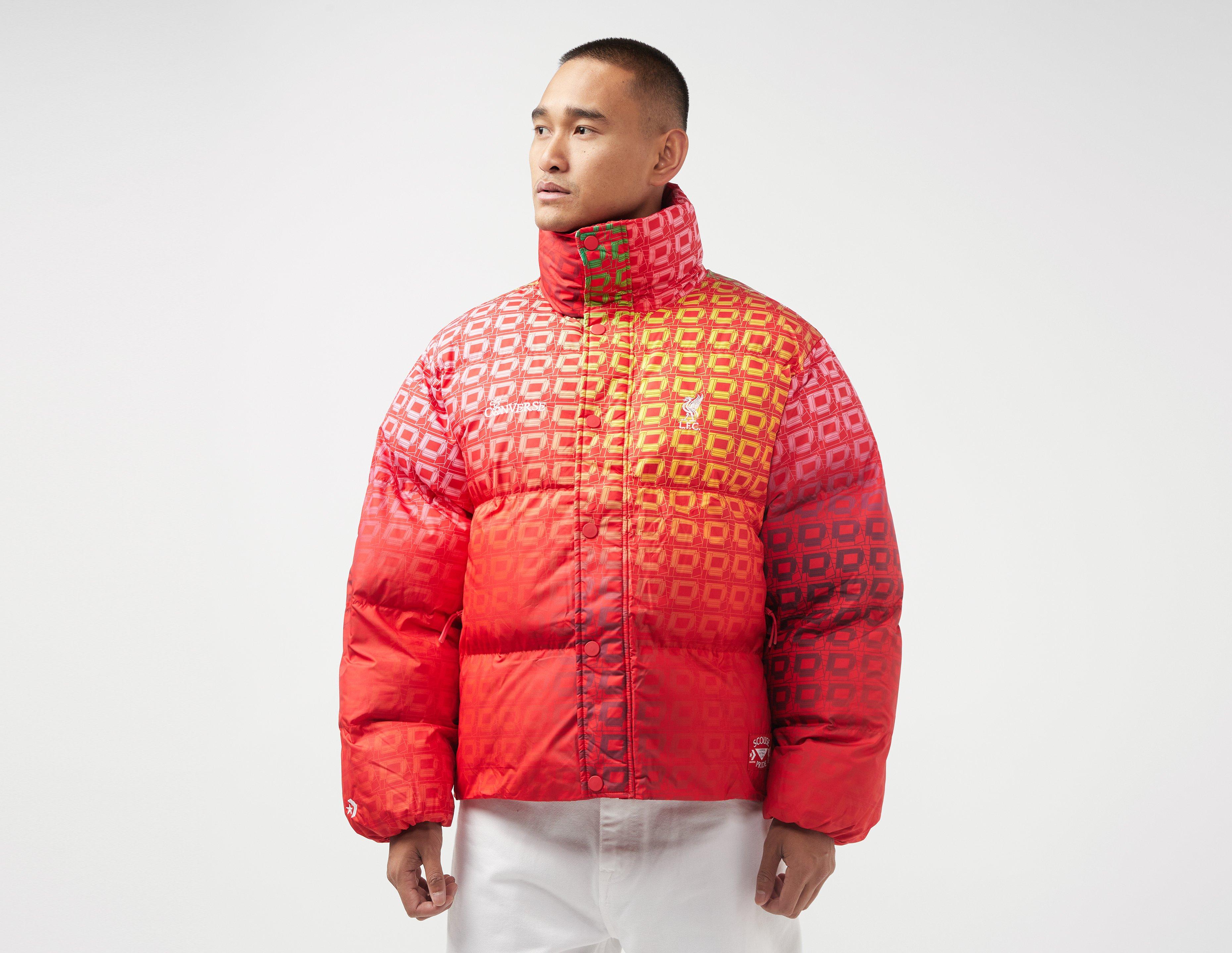 Converse and Liverpool FC have united for their second collaboration to celebrate the beating heart of the club - its supporters. This collection spotlights the club's rich history with the diversity and future aspirations of a new generation of fans. Featuring a pattern inspired by a birdseye view of Anfield, this puffer jacket oozes 'Scouse Pride' and the spirit of The Reds. Perfect for a cold night at Anfield, this premium jacket is finished off with embroidered logos from Converse and LFC. | our model is 6'0" and wears a size medium