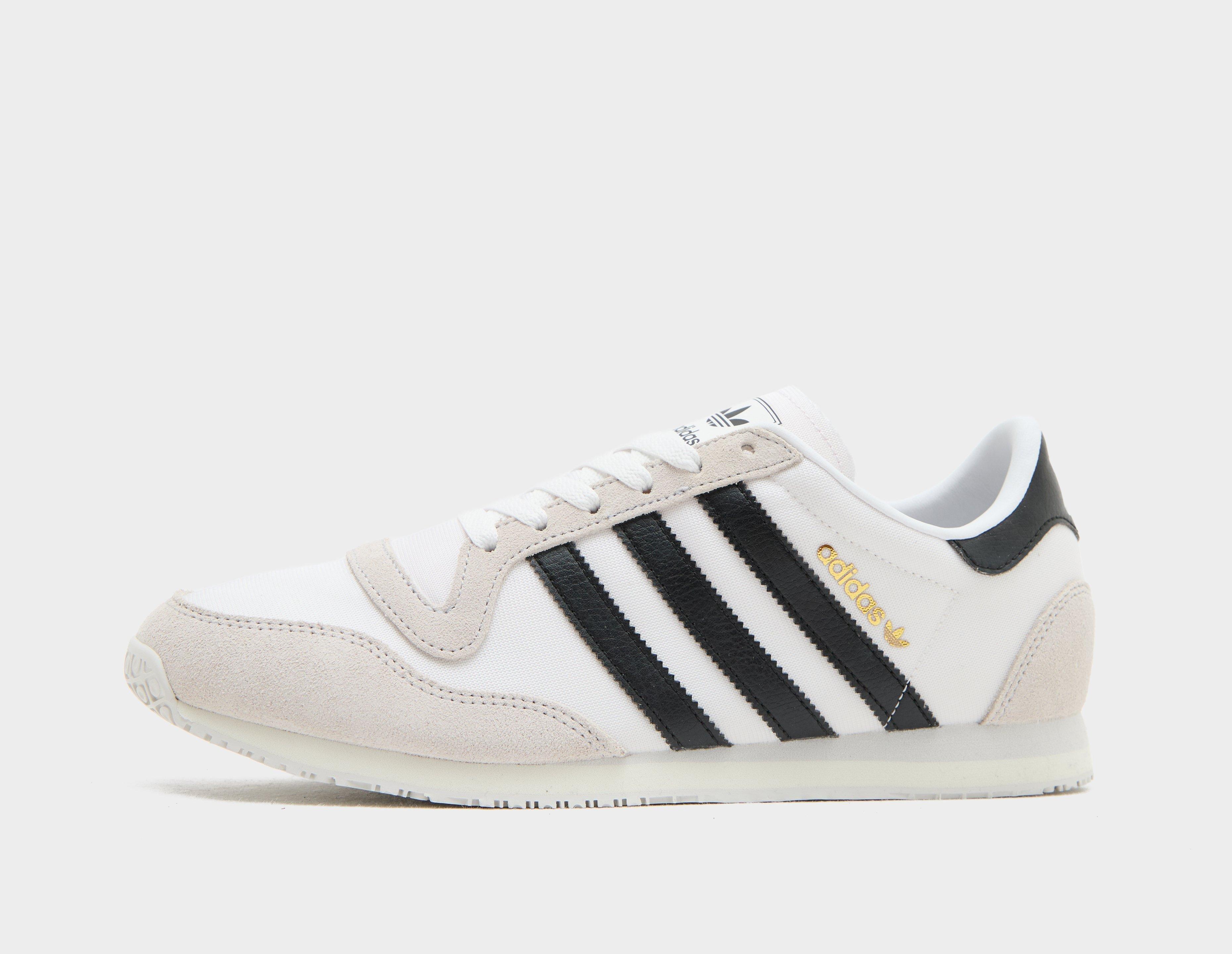 The adidas Originals Galaxy OG is a retro staple from the '70s with similarities to the SL 72 design language. The upper is constructed from 'Footwear White' nylon, while 'Core Black' leather 3-Stripes hallmark the sidewalls and EVA midsoles honour the vintage runner's premillennial design language. Trefoil insignias adorn both the tongue and heel cap while gold foil etches off across the laterals. | JR6170