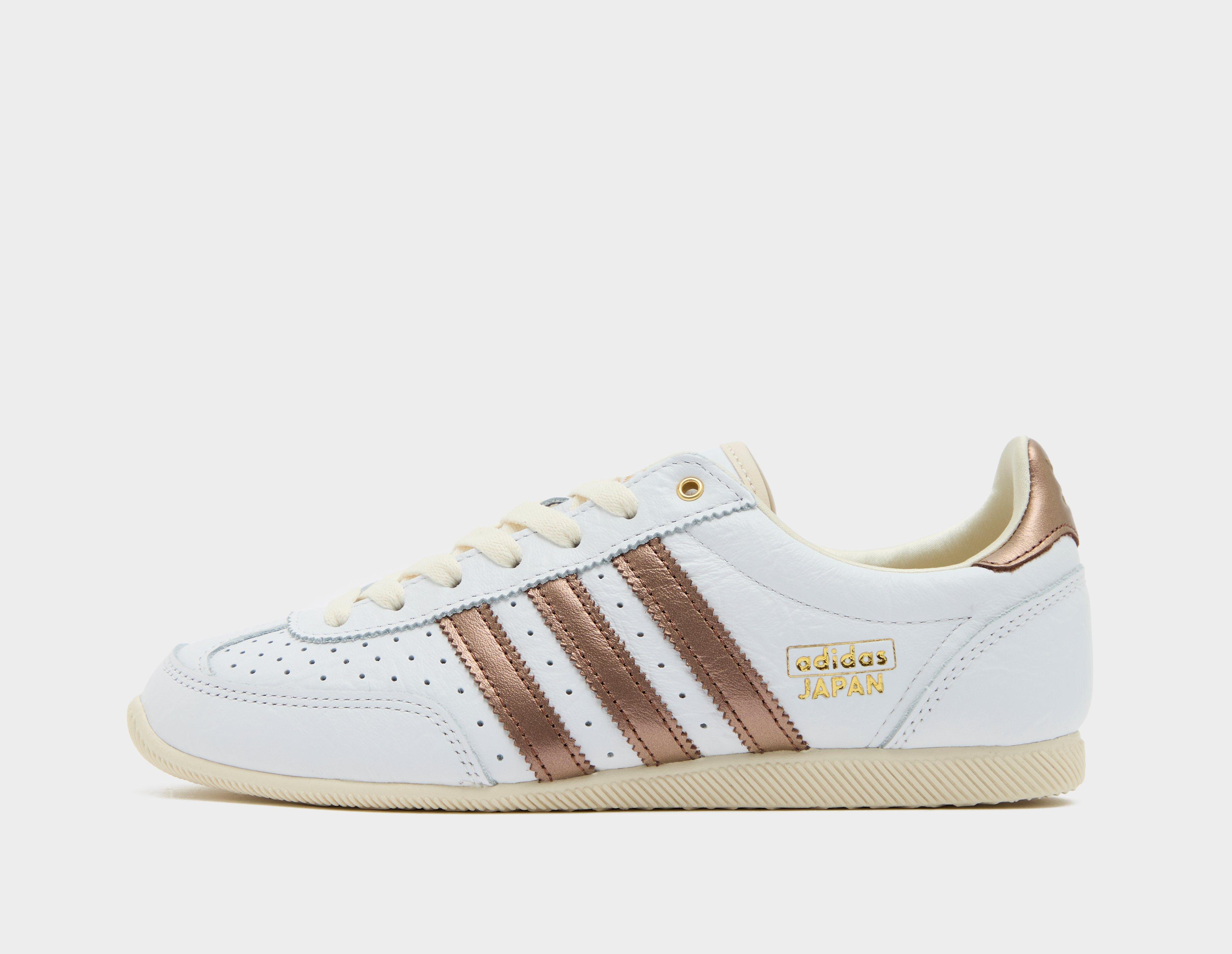 First dreamt up in the '60s, the adidas Japan returns for the contemporary audience, centred around quality craftsmanship. The upper is wrapped in premium white leather with striking bronzed detailing on the 3-Stripes, heel and toe, while 'adidas JAPAN' gold foil wordmark stamps the laterals. Silky fabric lines the inners for a luxurious feel, and to finish, an off-white rubber sole unit anchors the design. | JQ9025