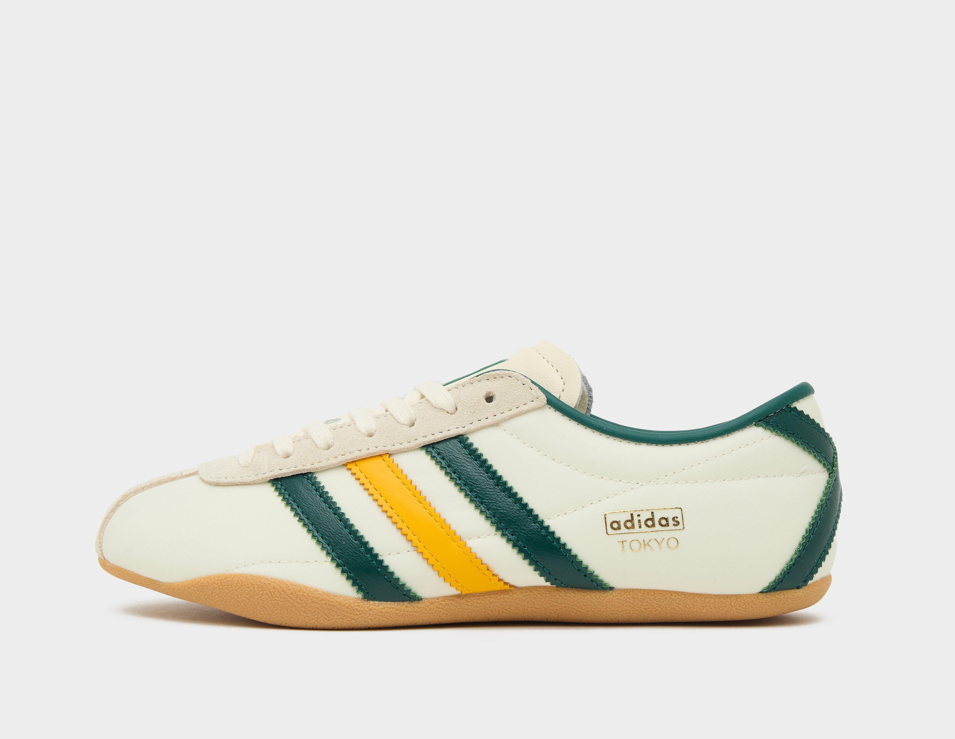 Vintage '70s styles are back in a big way. The adidas Originals Tokyo is a streamline recipe that's constructed from a sleek 'Cream White' leather upper and serrated 'Court Green' and yellow tooling. Underfoot, gum soles keep in check with its low-profile genetics, while 'Gold Metallic' foil branding adorns the lateral walls. | JQ0586