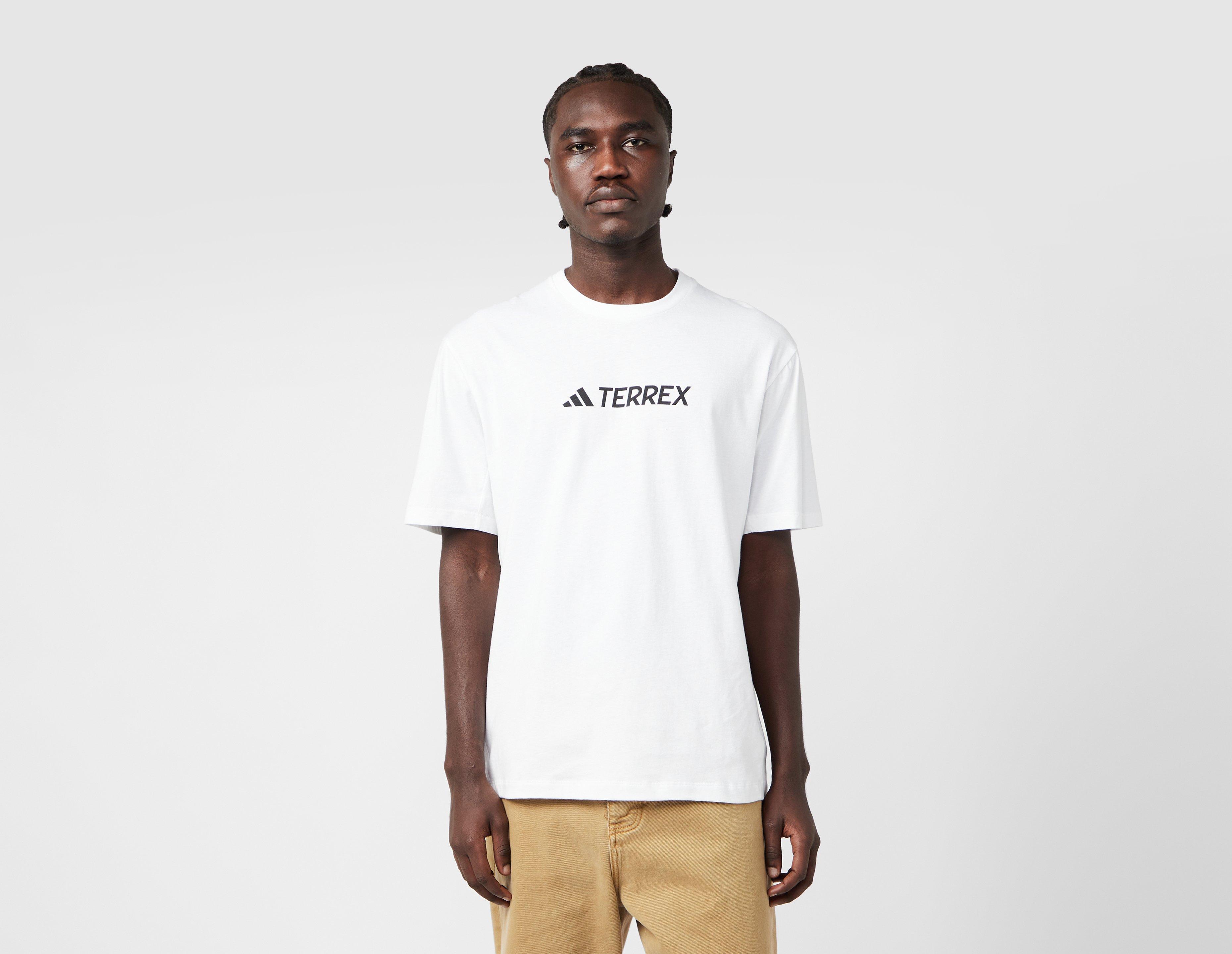 Crafted from soft, partly recycled cotton, the Classic Logo tee in white from adidas Terrex is cut to a relaxed fit and features contrasting branding on the chest. | JF9144 | our model is 6'2" and wears a size medium