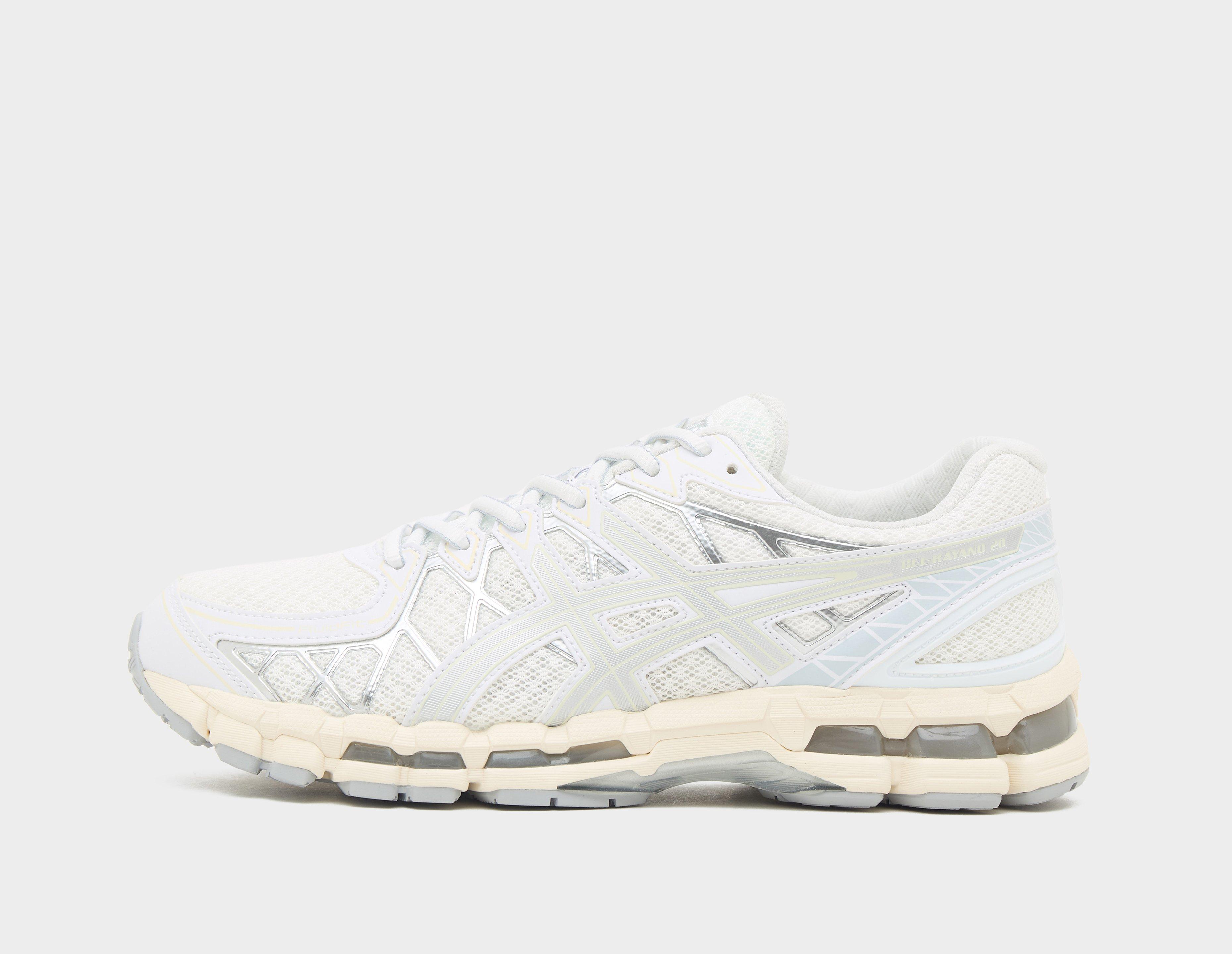 Launched in 2013, the GEL-KAYANO 20 draws inspiration from buildings, cars and technical shapes that populate the urban landscape. A breathable white mesh upper is topped with FLUIDFIT caging for a secure fit and a criss-cross 'Pure Silver' TPU application for increased support. Below, a GUIDANCE TRUSSTIC support system and dual GEL technology keep things comfy underfoot. | 1203A388.100