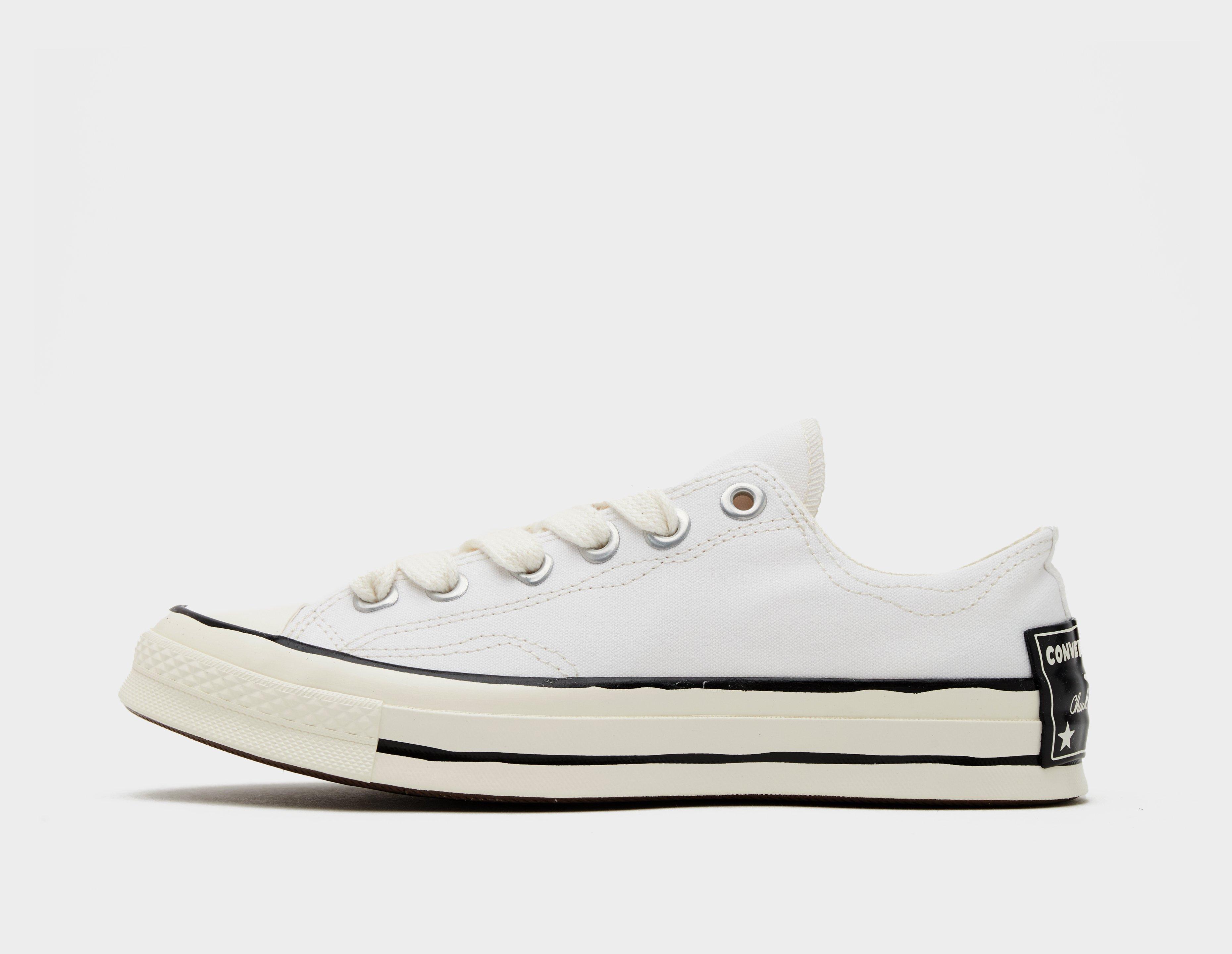 Exaggerated in cartoonish fashion, the Converse Chuck 70 Ox Sketch offers up something a little different by the Massachusetts label. The premium canvas upper opts for wavy contrast stitching, while the pinstripe foxing tape is hand drawn – a playful touch. Underfoot, OrthoLite cushioning incorporates contemporary comfort throughout the midsole, while an enlarged license plate graces the heel cap mirroring the effect of a car bumper sticker. | A08525C