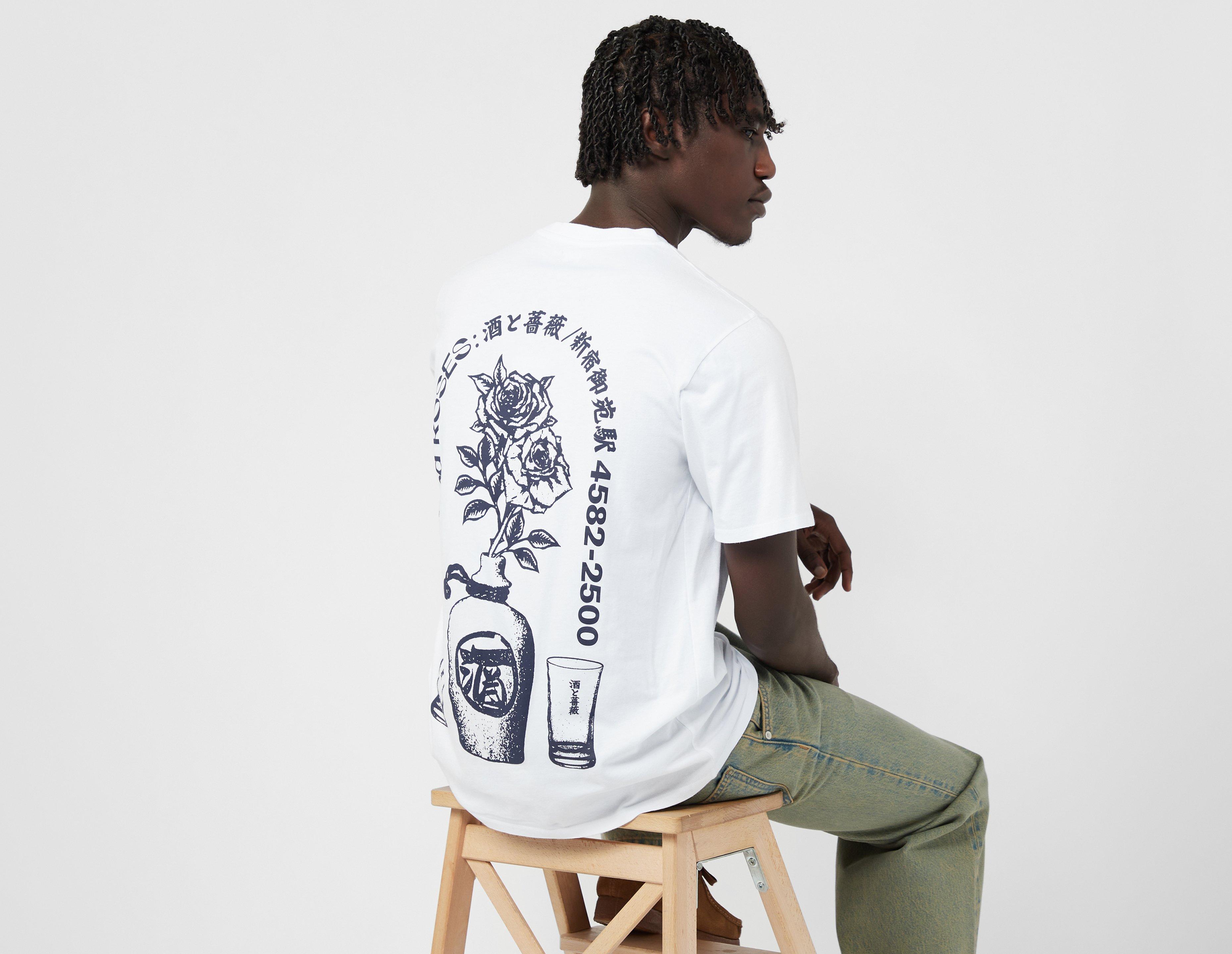 The EDWIN Sake And Roses T-Shirt is a premium layer from the Japanese label that houses front and reverse graphic prints. | our model is 6'2'' and wears a size medium