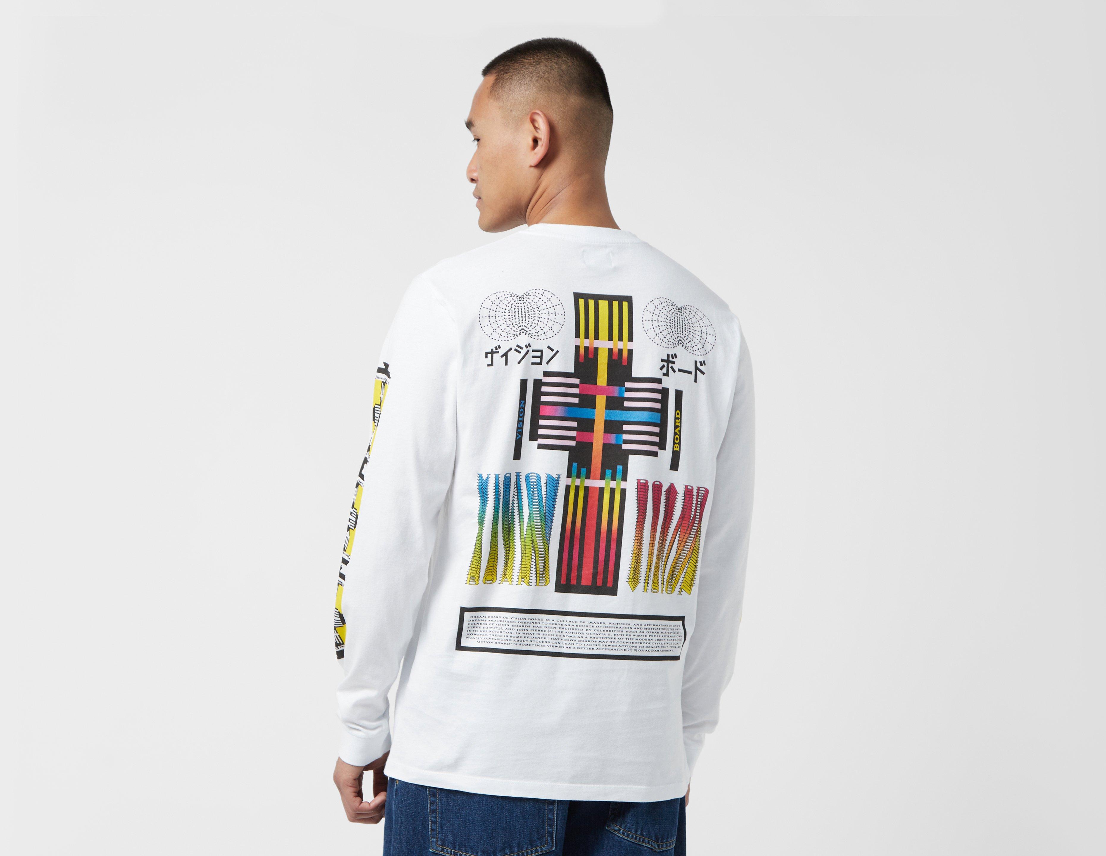 Made in Portugal, the EDWIN Vision Board Long Sleeve T-Shirt is a 165gsm cotton build from the Tokyo trend-setters which features graphic prints on the chest, back, and sleeves. | our model is 6'1'' and wears a size medium