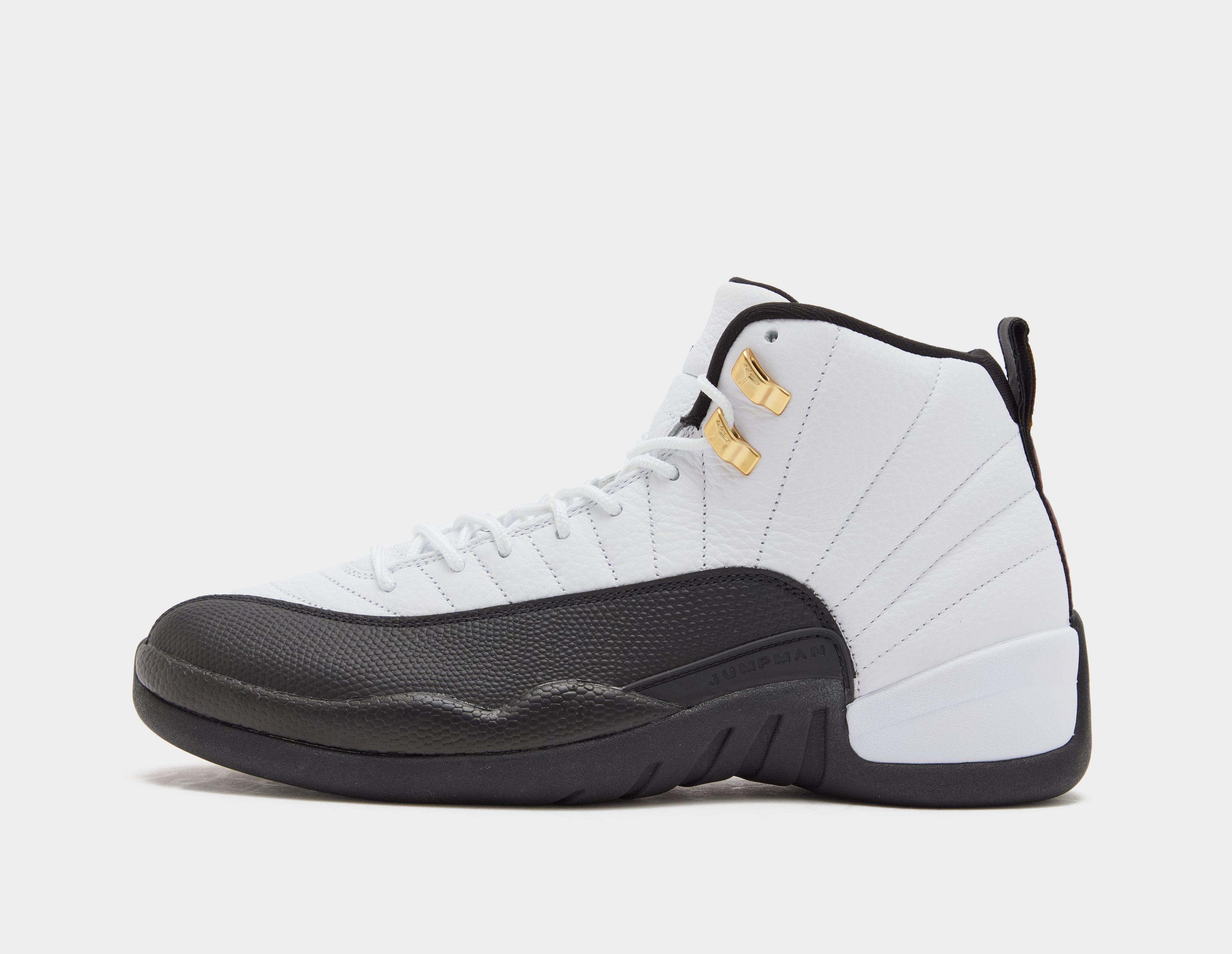 Initially launched during MJ's fifth championship season, Air Jordan's 12 Retro 'Taxi' has restarted its meter for 2025. The Air Jordan 12 Retro 'Taxi' is constructed from a pristine white leather upper with sunrise stitching inspired by Japan's Rising Sun flag, as well as textured snakeskin mudguards and gold metal eyelets. Jumpman insignias adorn the tongue, while woven 'Varsity Red' labelling strikes the heels along with numerical '23' embroidery; a nod to MJ's Chicago Bulls jersey number. Underfoot, full-length Zoom Air cushioning is supported by an exposed carbon fibre shank throughout the phylon foam midsole, whereas rubber outsoles with herringbone traction pods keep this one a court staple. | CT8013-117