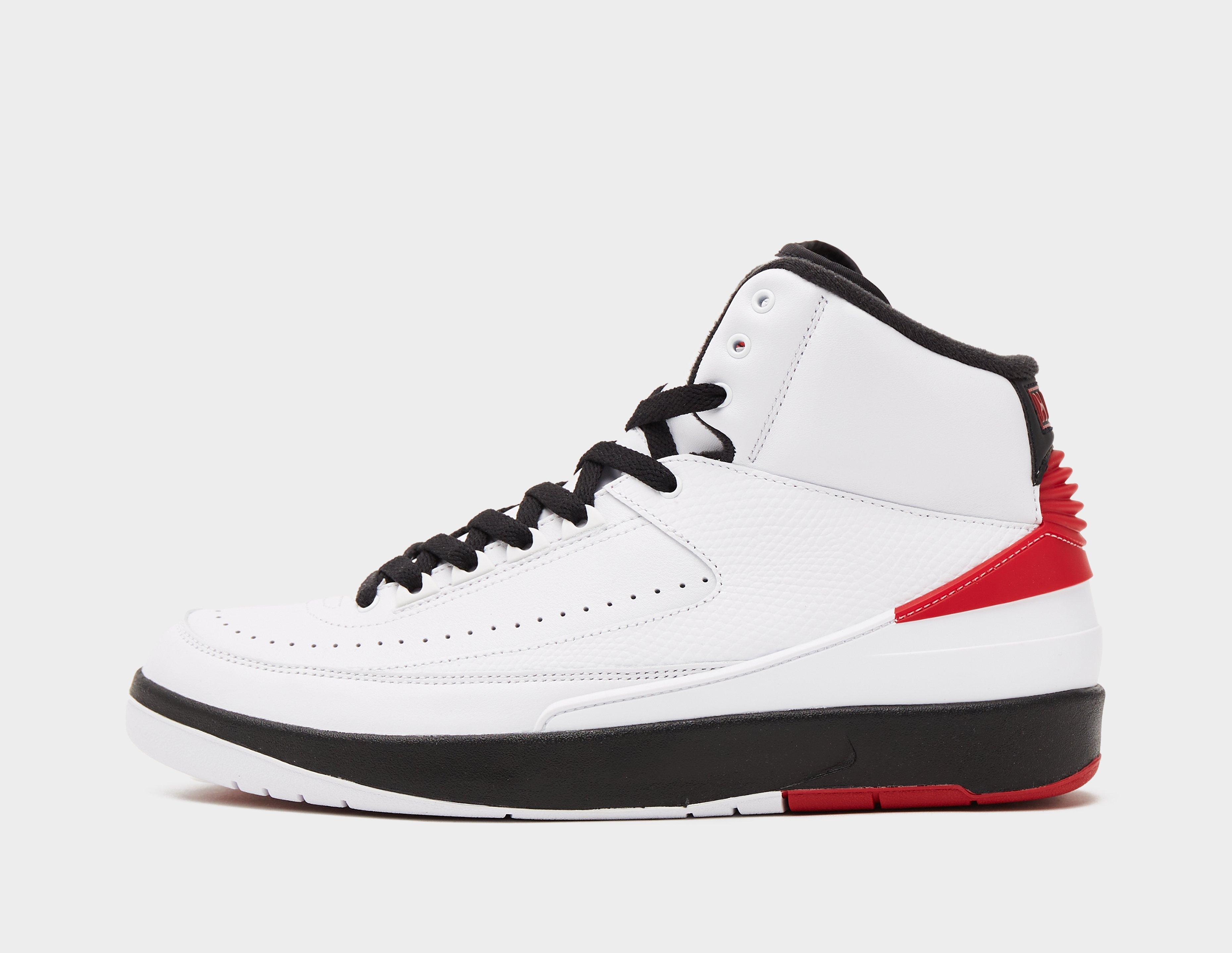 The Air Jordan 2 was Bruce Kilgore and Peter Moore's joint effort, making its debut in 1986 and marking an important step in the label's evolution. Fast forward to 2022, and the retro variant returns to our shelves with the renowned 'Chicago' paint up. A plush leather construction informs the uppers, with synthetic details including the iconic faux lizard skin-like quarter panels. Air cushioning delivers cloud-like comfort, while underfoot a triple-tone rubber sole unit adds some durability and tacky traction. Boasting the familiar white, black and red 'Chicago' colourway, Nike branding takes its usual spot on the heel while the classic Wings logo adorns the tongue for a dose of heritage. | DX2454-106