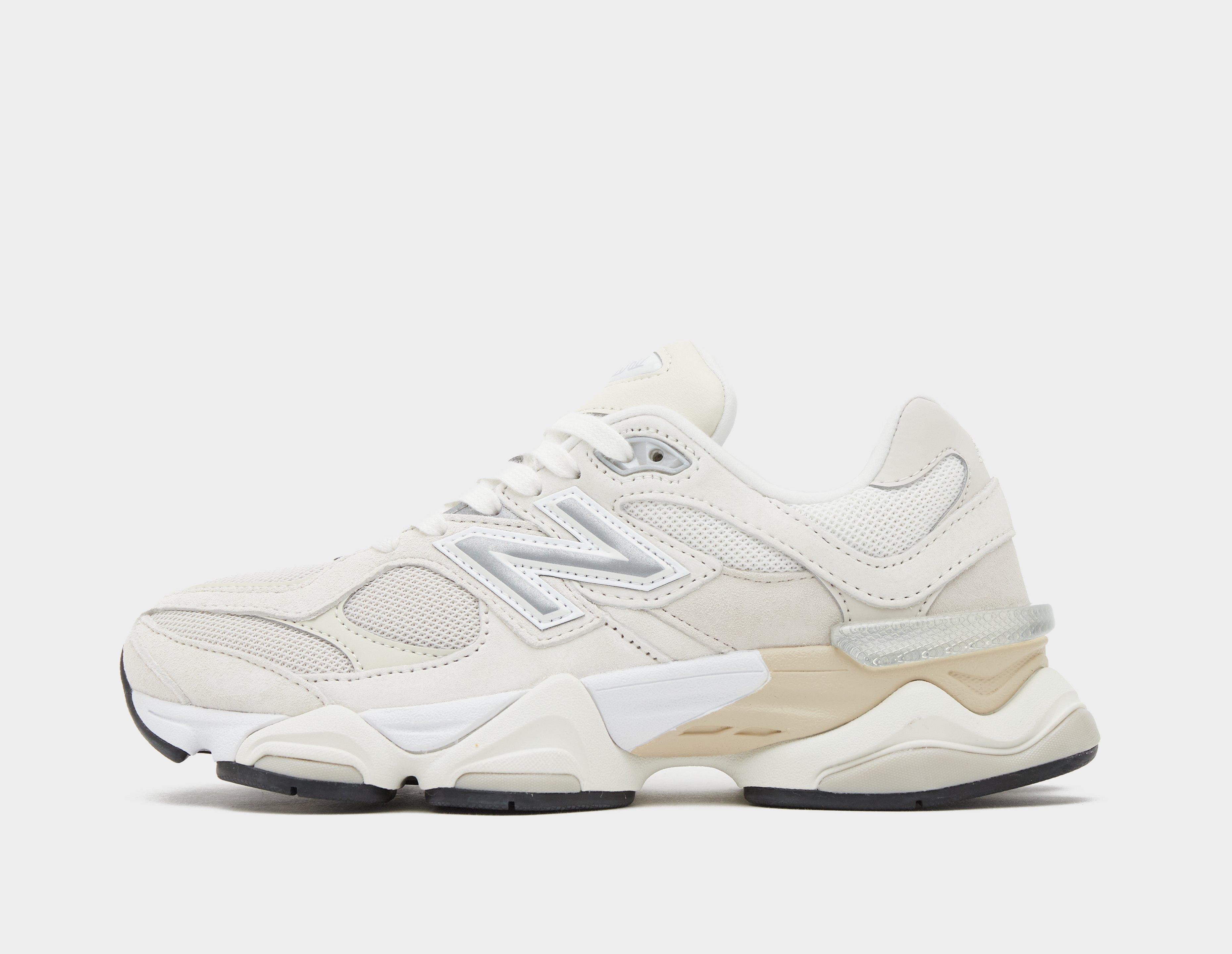 The 9060 blends vintage running with futuristic design elements, this time arriving in a pulled-back palette of calming shades. A mixed-texture upper of 'Moonbeam', 'Sea Salt' and 'Turtledove' combines breathable mesh, soft suede and luxurious leather, while synthetic 'N' branding sits familiarly on the sidewall. Below, ABZORB technology and SBS cushioning in the chunky midsole ensure stability and comfort with every stride. | U9060WHT
