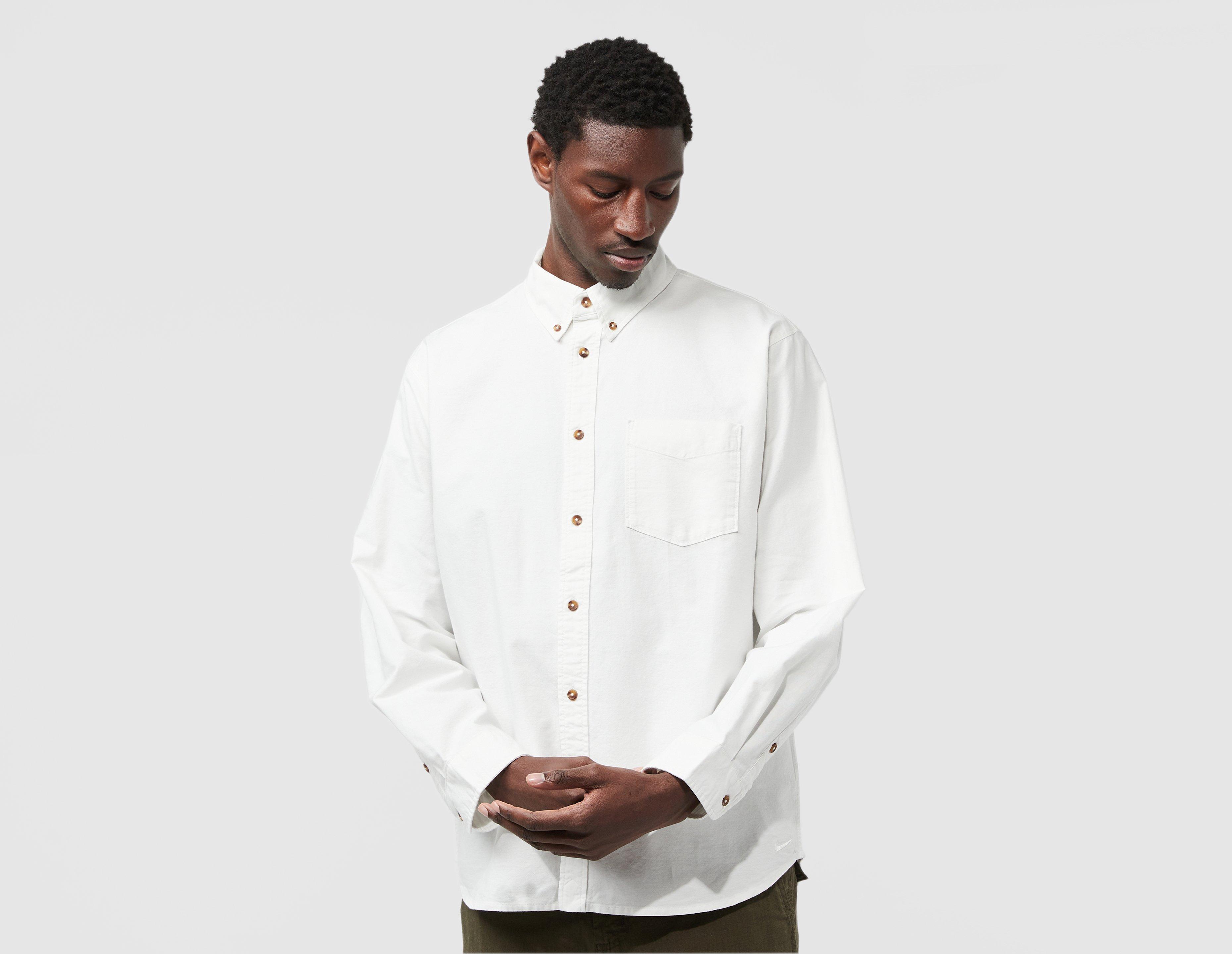 Nike get formal with its Oxford Long-Sleeve, a buttoned down smart direction from the sporting powerhouse. Made from soft, chambray fabric that's roomy around the shoulders and body - with a subtle Swoosh above the lower left hem. | FN3125-121 | our model wears a size medium