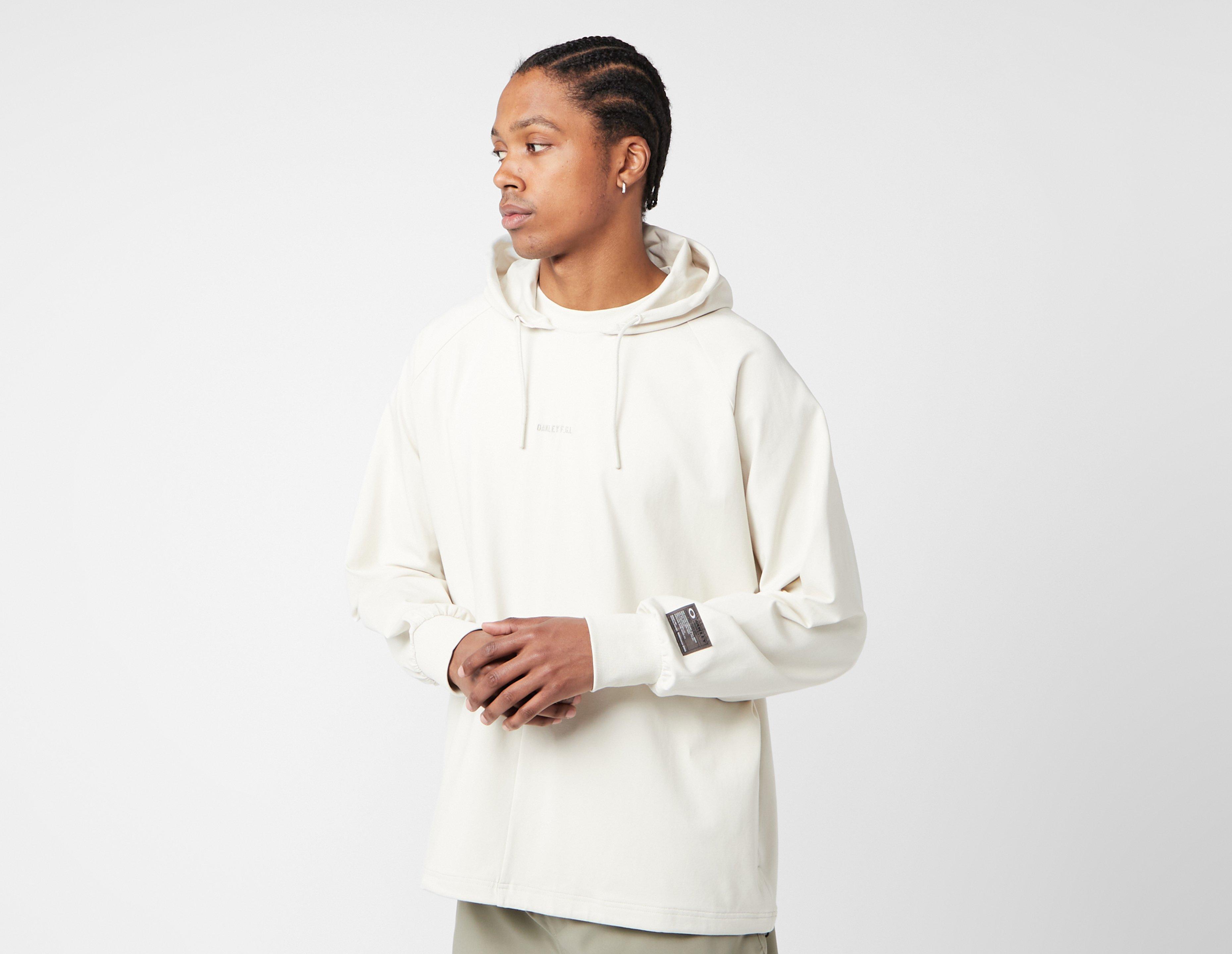 Oakley's FGL Slick Hoodie is cut from quick-drying 'Almond Beige' Hydrolix cotton to a cropped fit that's adjustable at the hem. An adjustable hood lines the neck, while raglan sleeves house ribbed cuffs and logo branding adorns the front and reverse. | our model is 6'2'' and wears a size medium