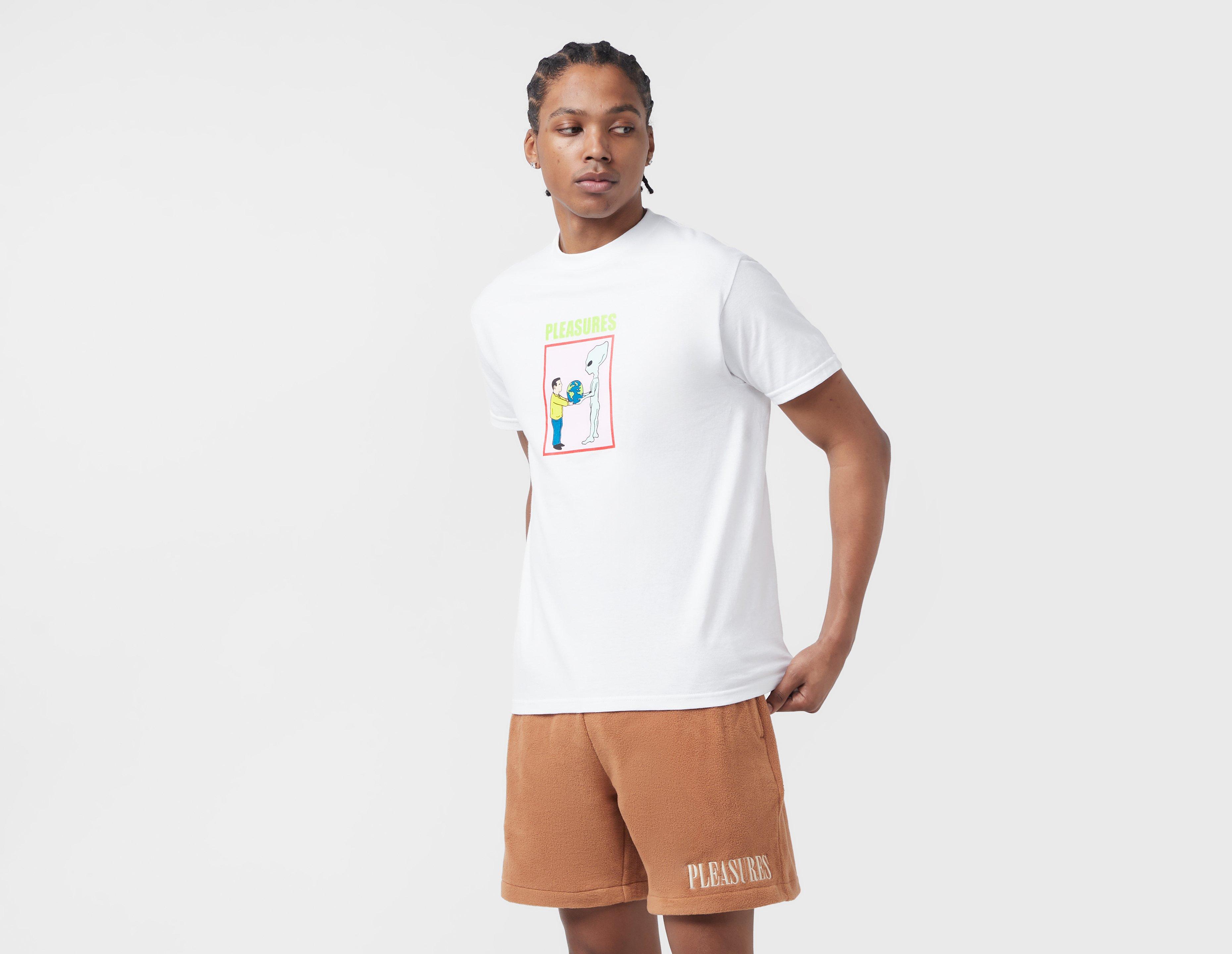 Californian streetwear giants PLEASURES own a striking punk ethos and that is resembled throughout its apparel. This tee is cut from premium cotton and features a branded graphic to the front which contrasts with its all-white surroundings. | our model is 6'2" and wears a size medium