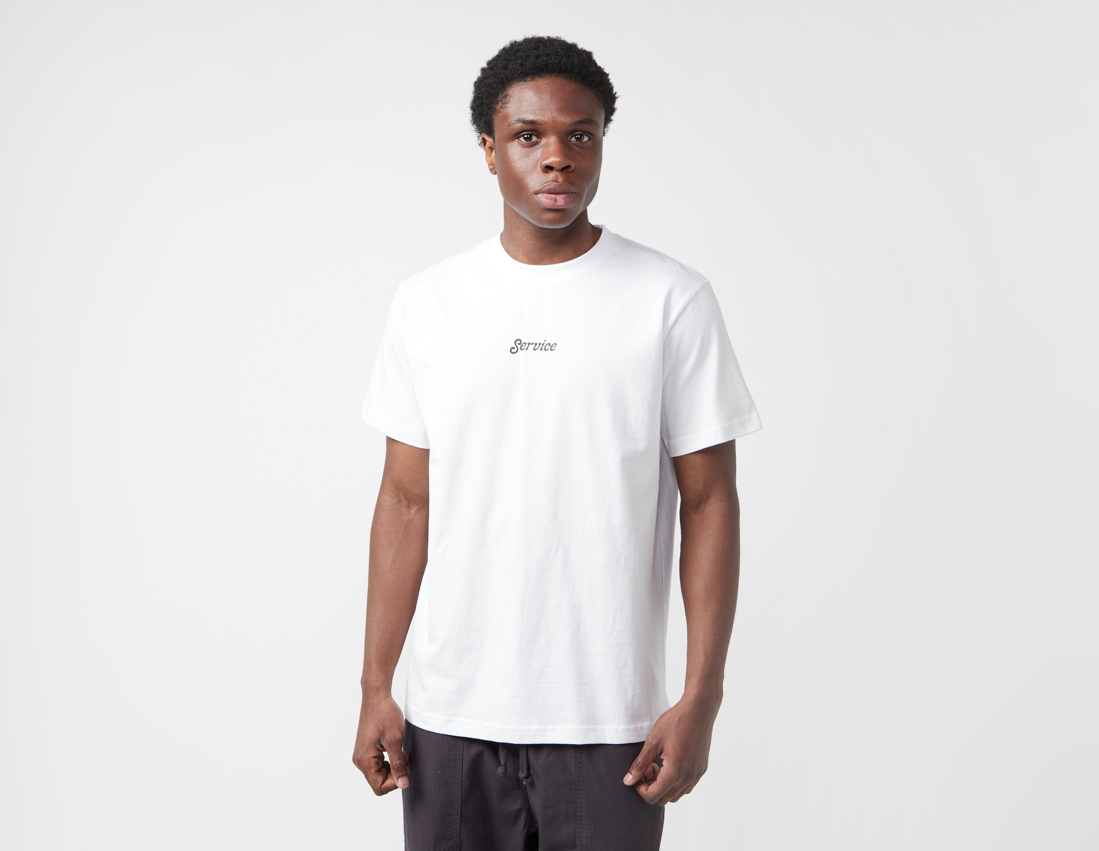 Garment-dyed, Service Work's Small Logo T-Shirt is cut from heavyweight 7oz cotton to a regular fit. A hand screen-printed typographic logo adorns the chest. | our model is 6'1'' and wears a size medium