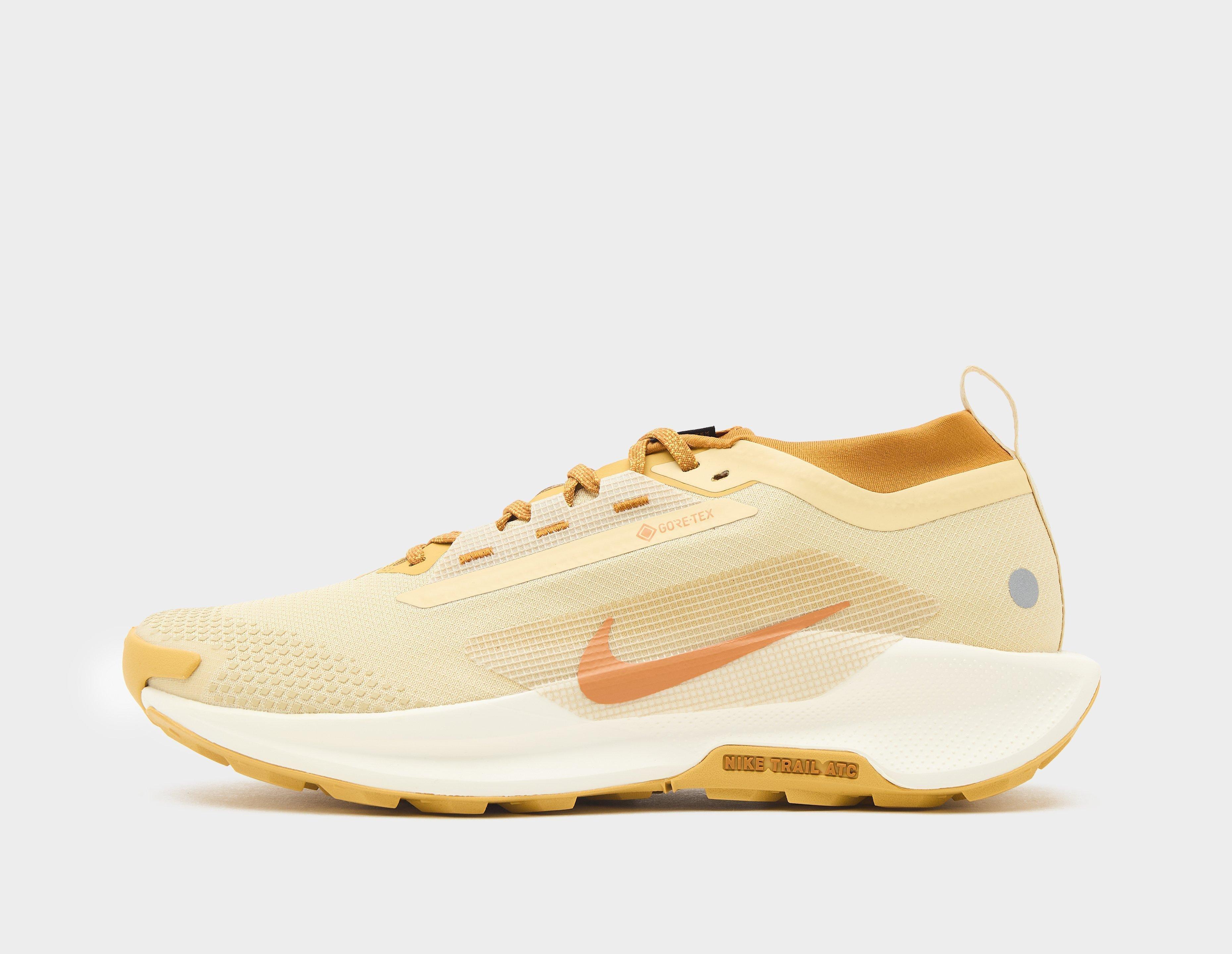 Stay protected on wet days in the city and muddy trails with the Nike Pegasus Trail 5 GORE-TEX. Arriving in 'Team Gold' and 'Desert Ochre', this weather-ready silhouette features a waterproof upper with a high ankle cuff and a 3D print toe cap. A ReactX foam midsole offers responsive cushioning to every stride, adding lasting energy to your day. | HQ7494-700